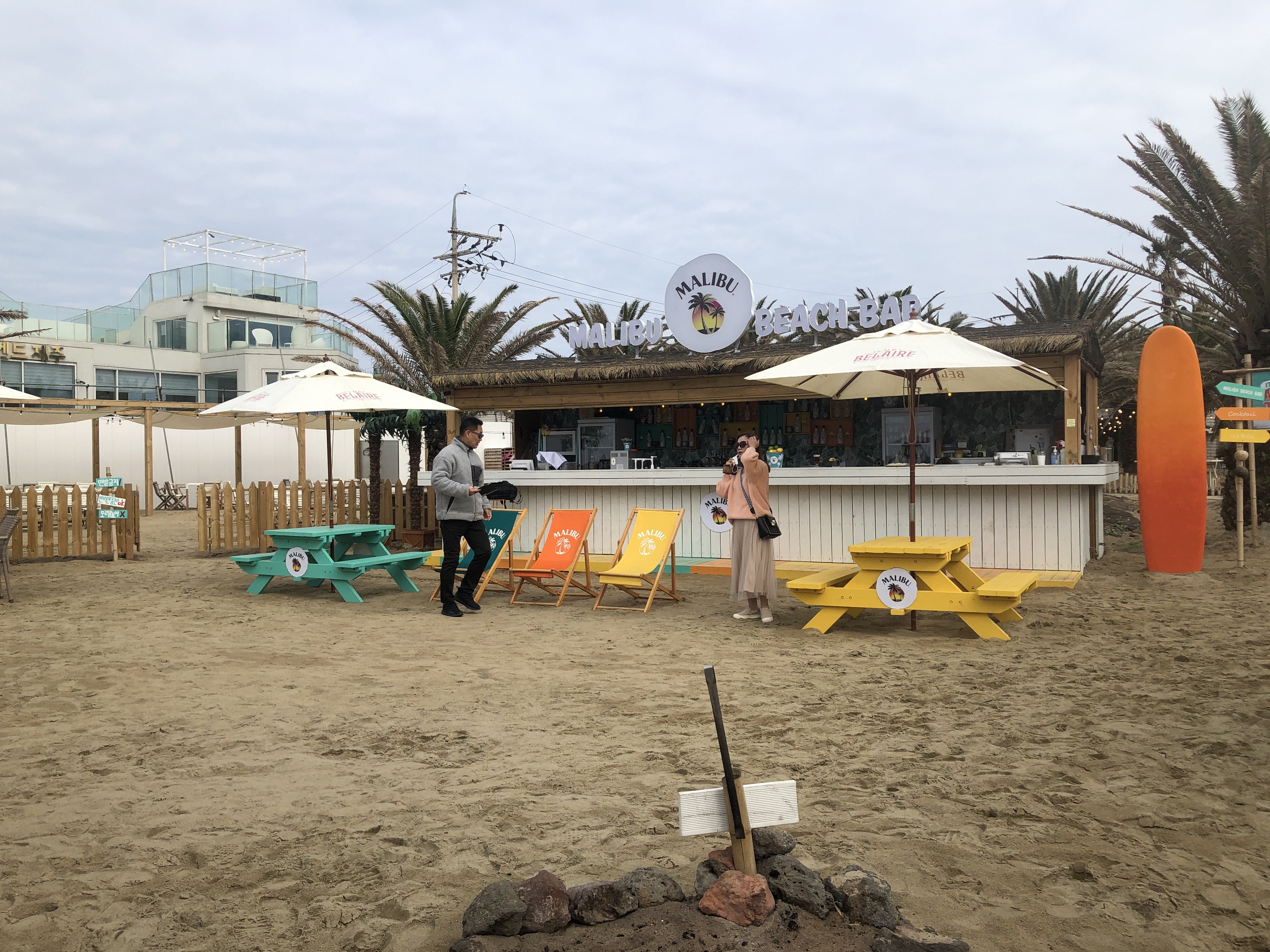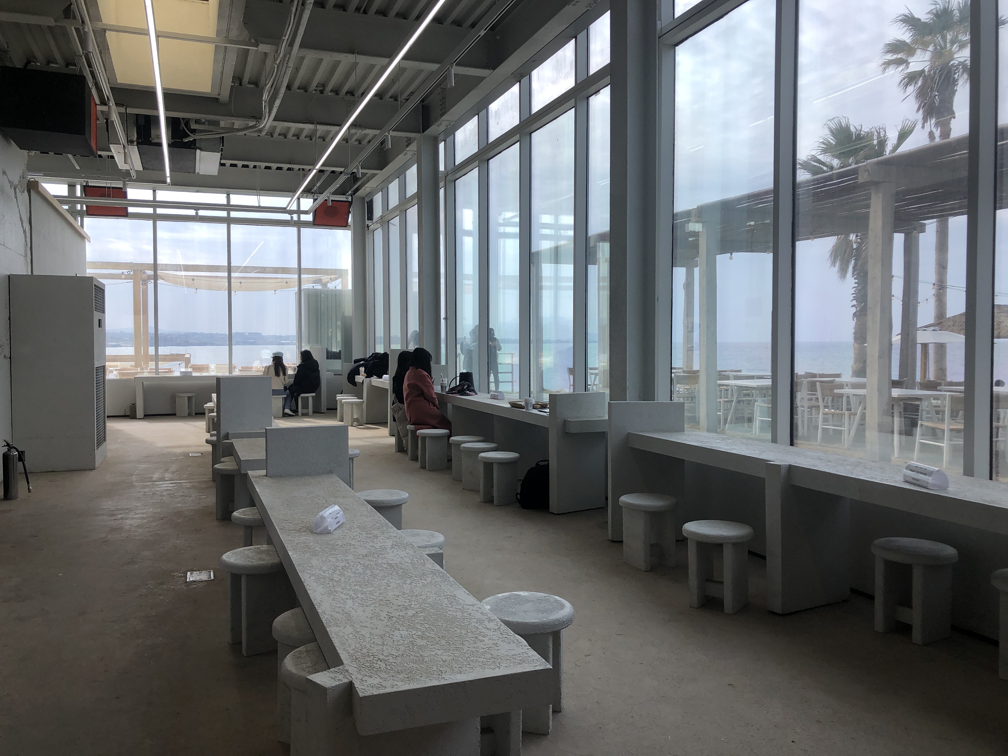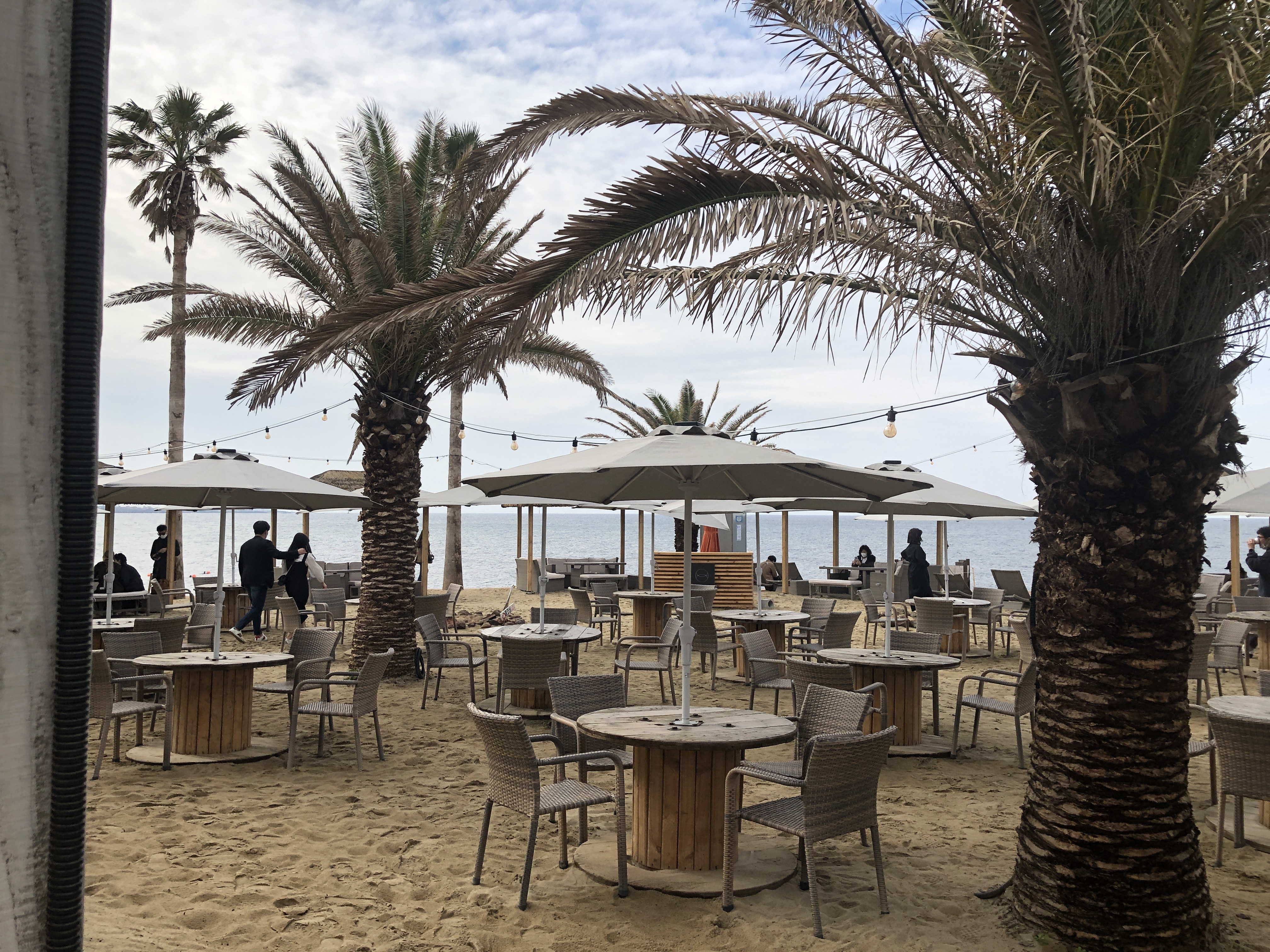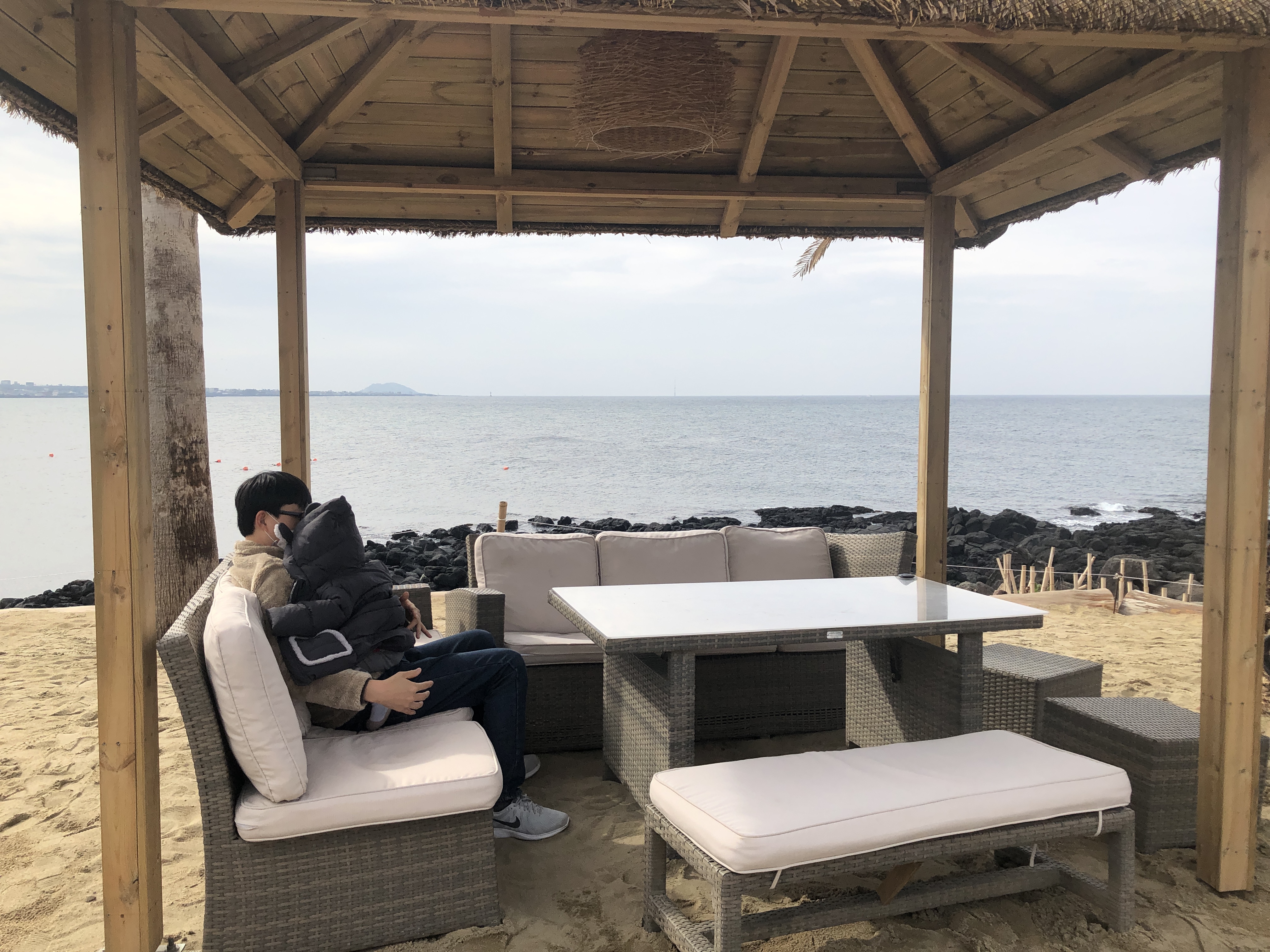 모래사장이 아닐줄 알았는데 모래사장이에여... 다행히 사람이 없어서 편한 쇼파자리에 앉았습니다. (모래때문에 몽상드애월은 깨끗함과는 거리가 먼것같아요. 하지만 뷰가 좋습니다.)