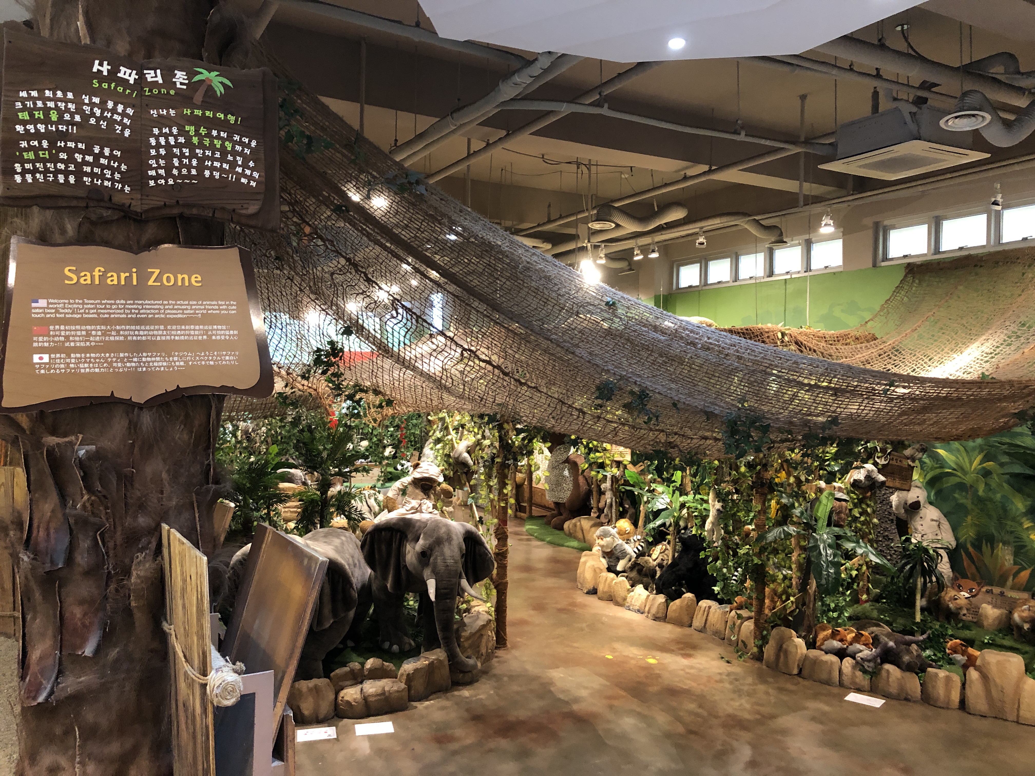 테디베어사파리 입구에서 기념촬영을 하고 안으로 들어가면 이렇게 사파리존이 있습니다. 네셔널지오그래픽에서 만든 것 같은 실사판 사파리 동물 인형들이 잘 전시되어 있어요.