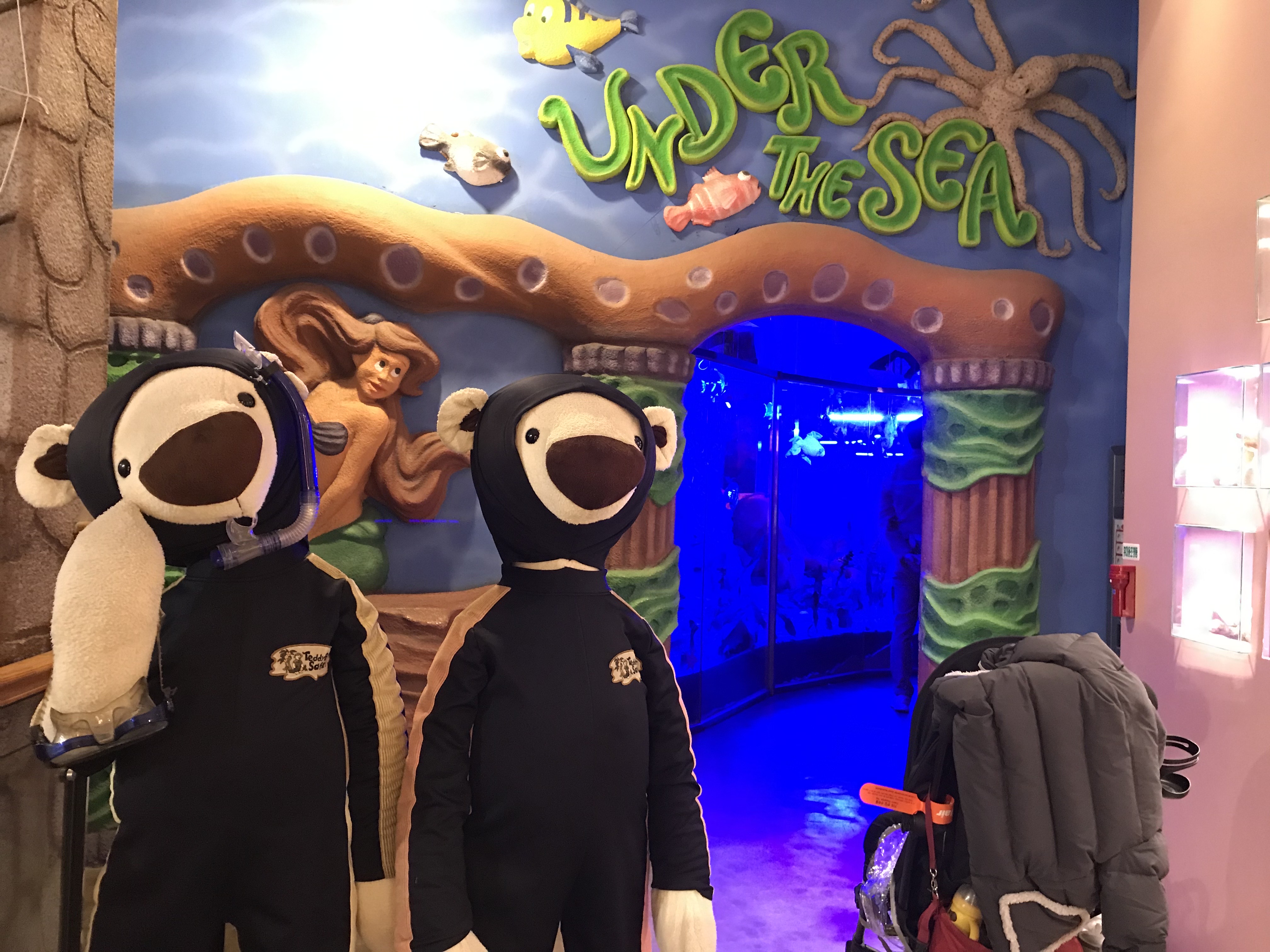원래 테디베어사파리 2층가는 계단으로 가면 바로 아쿠아리움이 있는데 저희는 엘리베이터를 타서 아마존부터 봤네요. 아쿠아리움입구로 들어가면 센서가 감지되어 아쿠아리움 안에 물고기 인형들이 움직입니다.