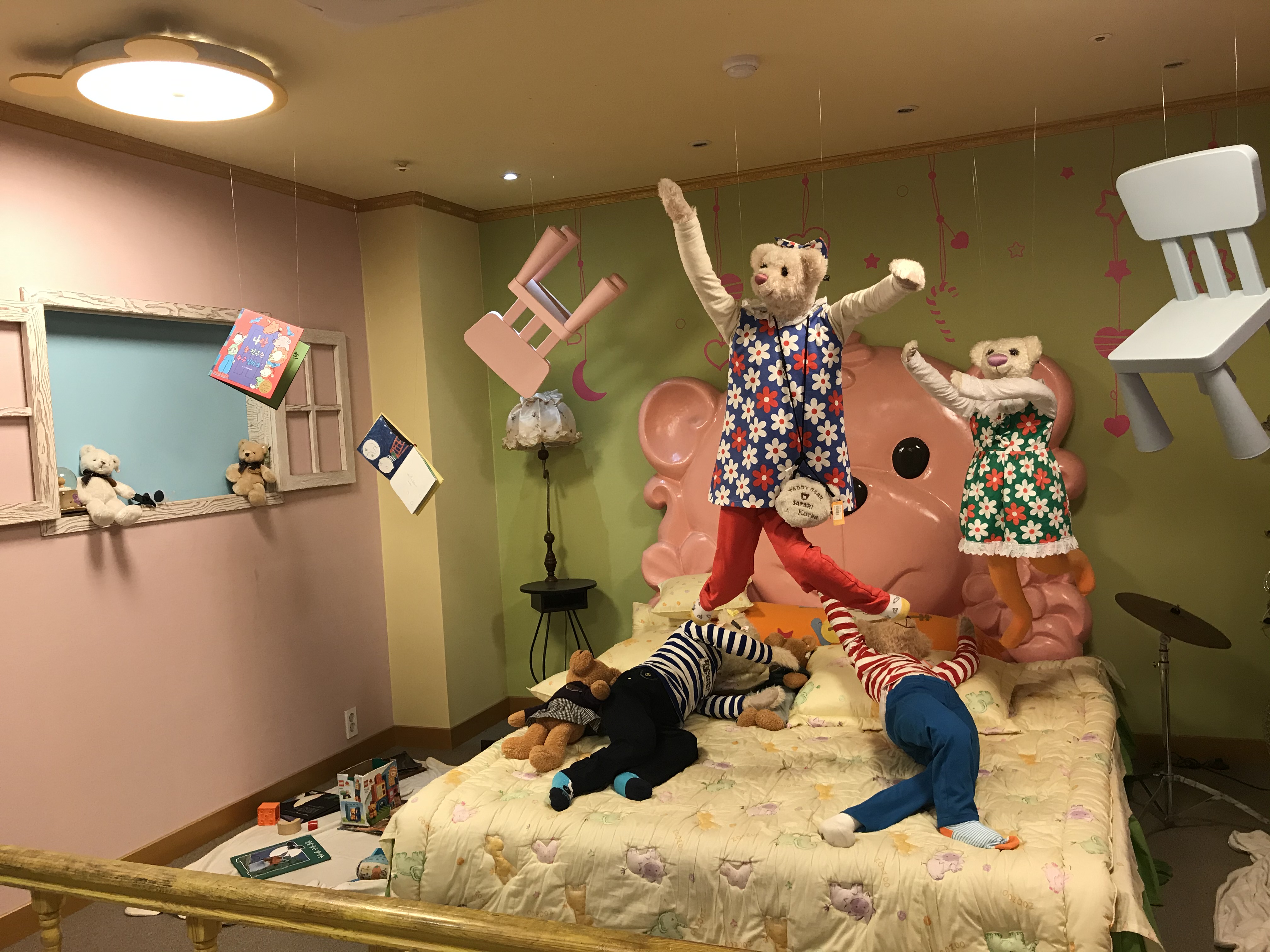 작가의 상상력 보이시나요? 너무 깜찍하지 않나요? 전시공간 모든 곳에 동심을 자극하는 예쁜 동물 인형들이 있습니다. 그리고 전시공간 내부로는 들어갈 순 없지만 군데군데 포토존이 있어서 사진찍기 좋아요.