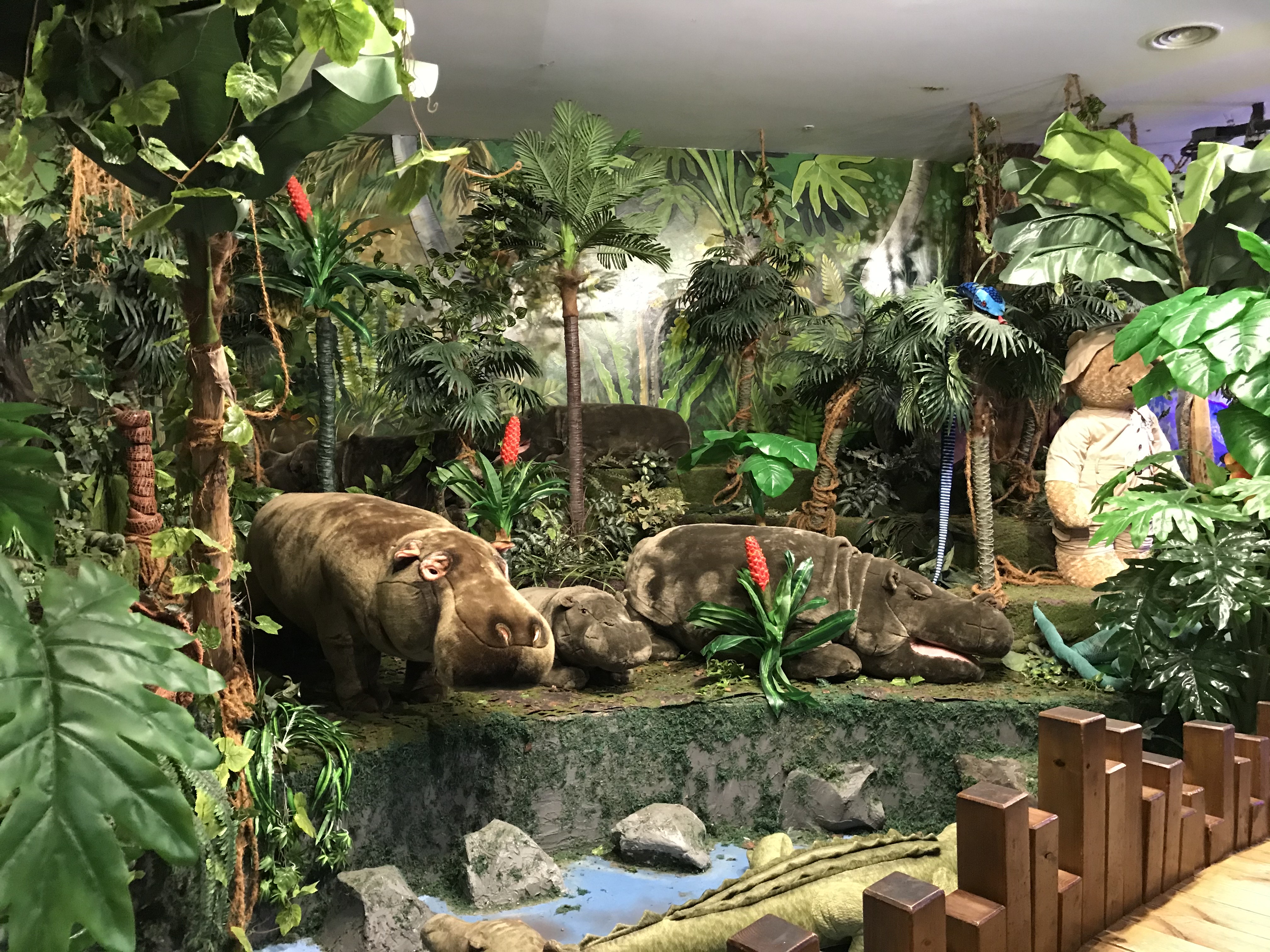 동화나라 테마를 지나 아마존을 구경했습니다. 여기도 볼거리가 참 많아요. 다리를 건너면서 실제적인 모습으로 만들어진 이구아나, 뱀, 악어, 하마인형 등을 구경할 수 있습니다.