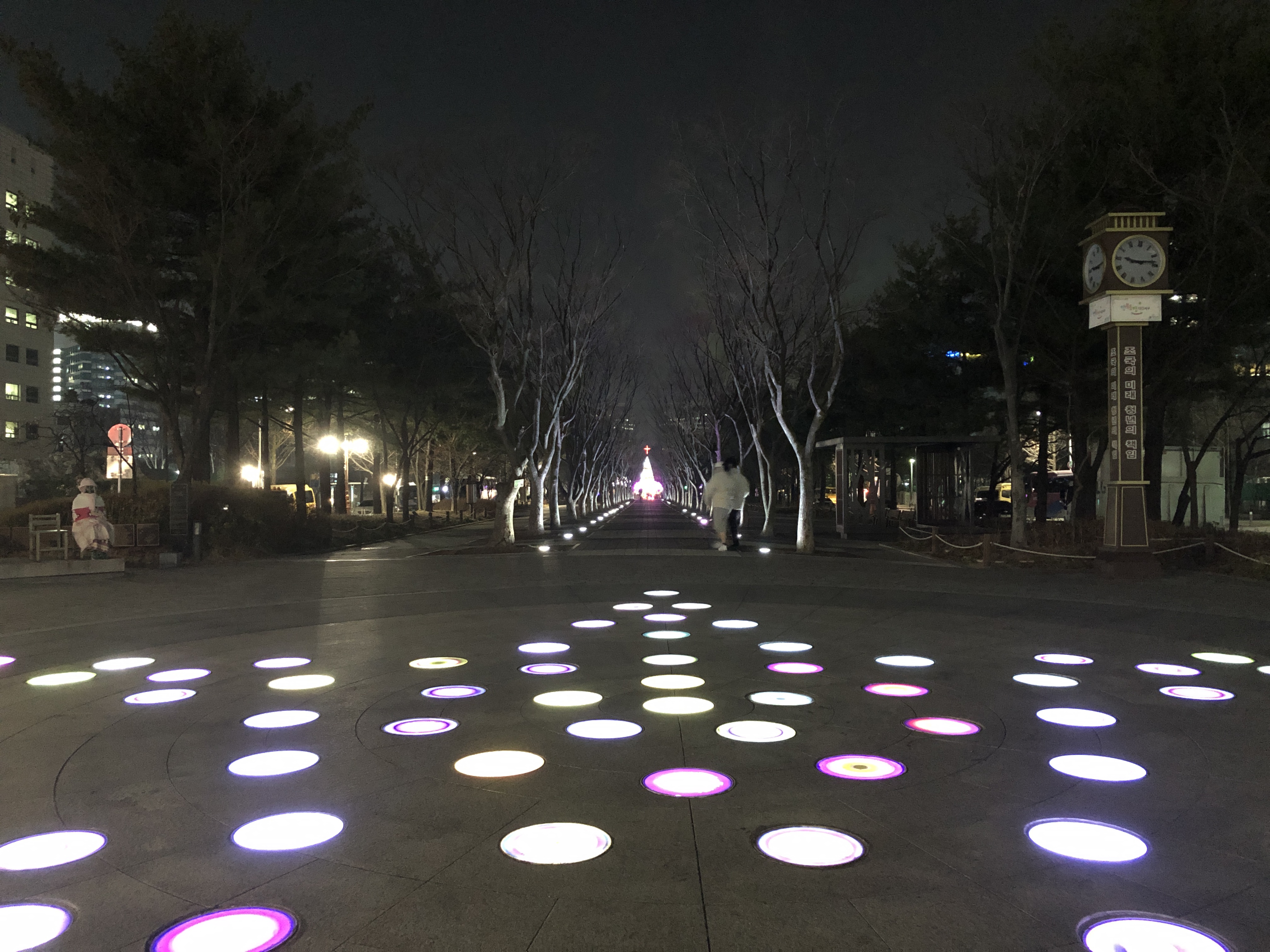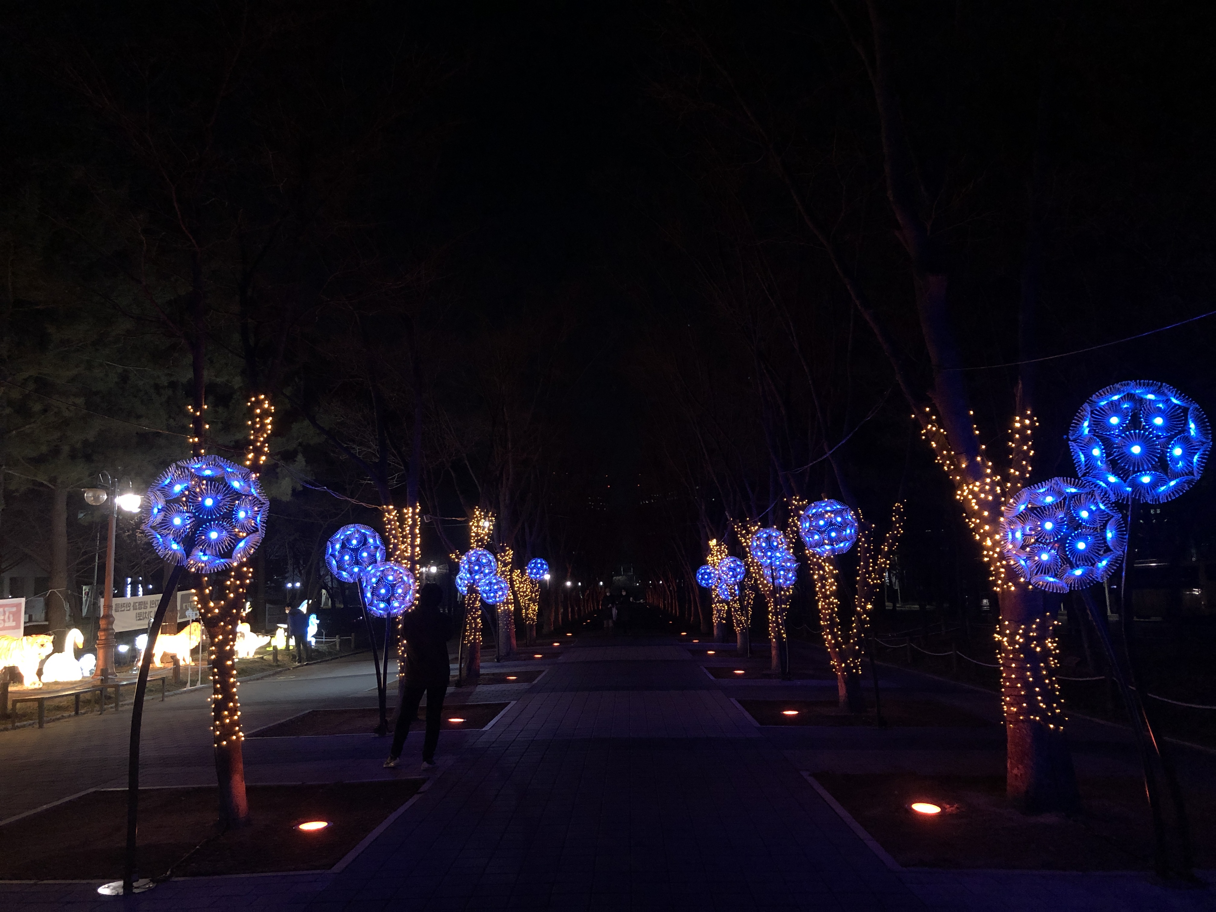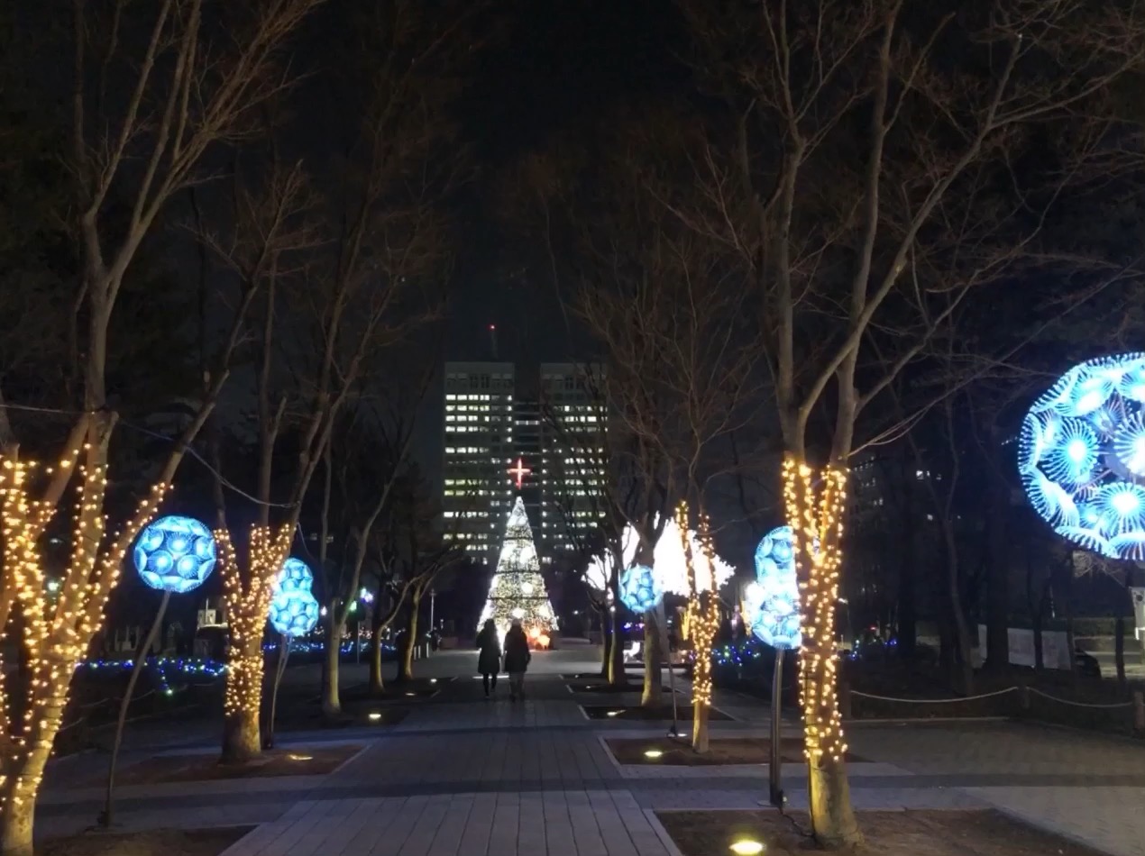 시청 뒤 보라매공원에는 반짝반짝 불빛으로 예쁘게 장식이 되어있더라구요! 사람도 없어서 한가한 밤을 즐길 수 있었어요.