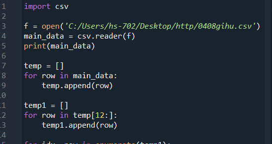 temp.append(row) #temp에 한 줄씩 추가로 row에 있는 데이터를 넣는다.