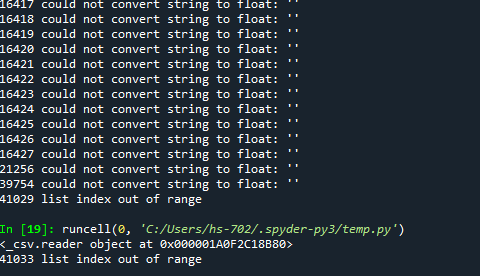 if문을 사용하면 could not convert string to float 오류는 사라지지만 list index out of range라는 또다른 오류가 생긴다.