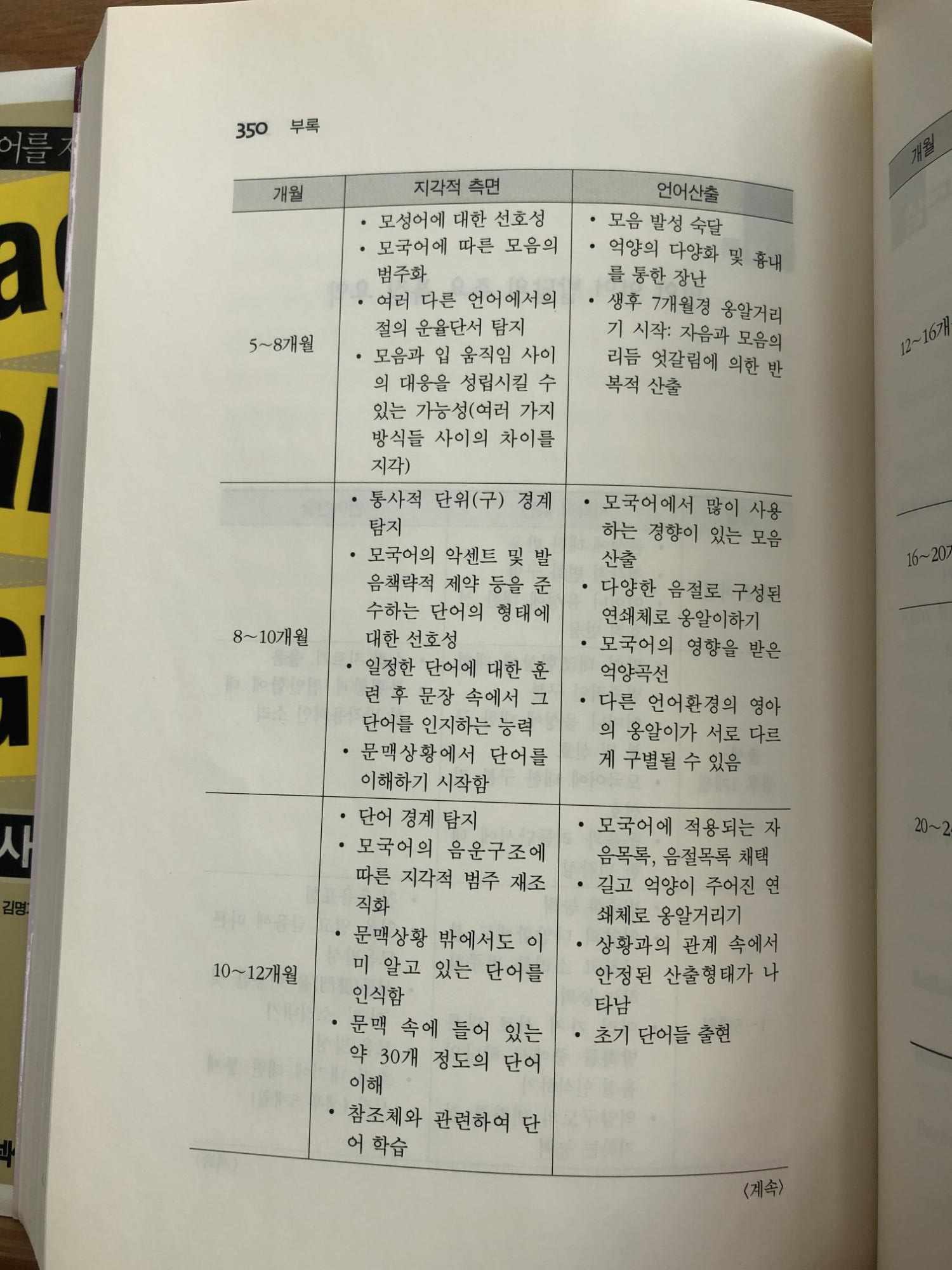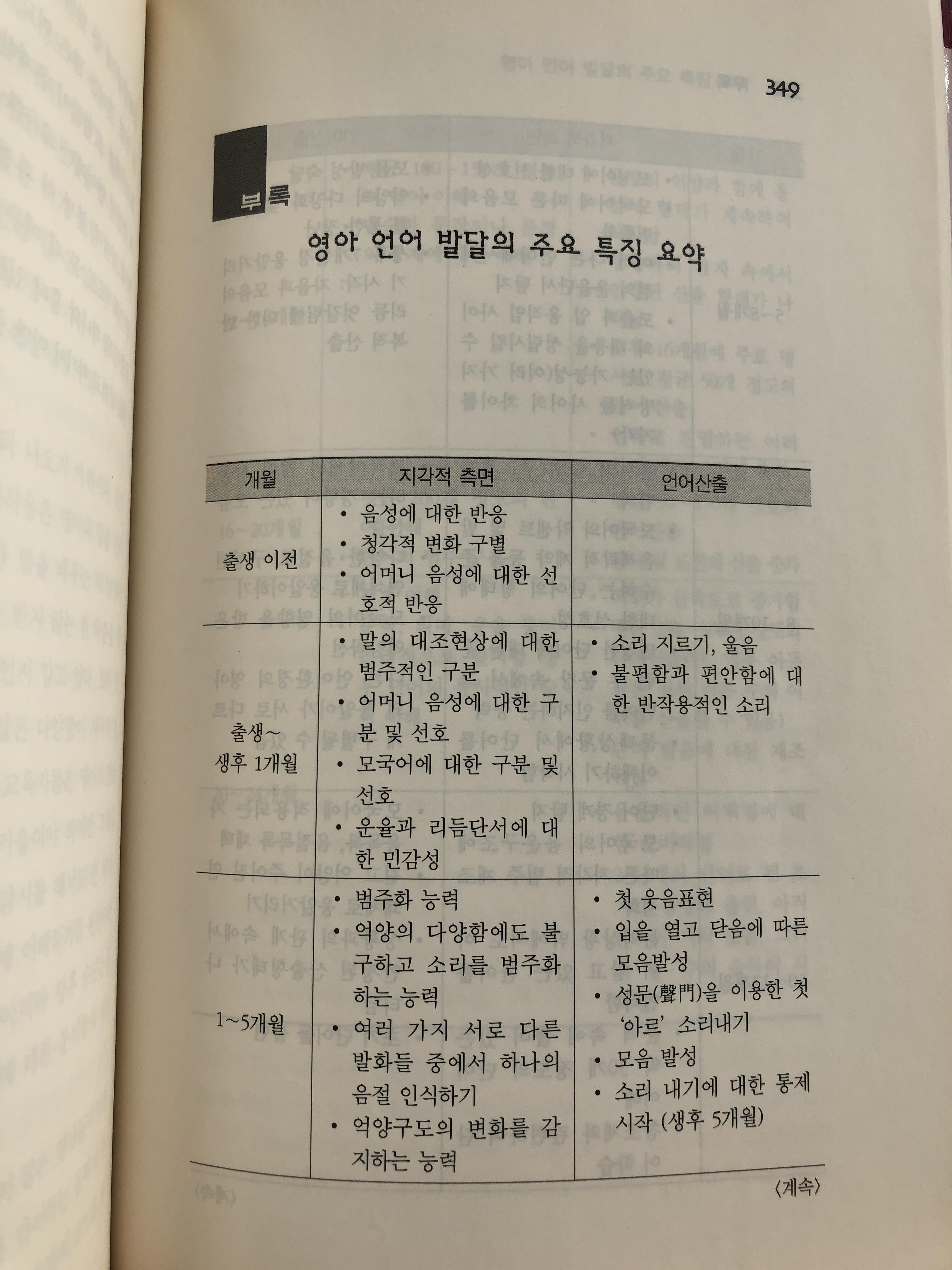 이 책은 대학교재로 사용되었을 것 같이 다소 딱딱한 논문 구조로 되어있다. 재미없어 보일지라도, 이 책에는 영어, 프랑스어, 일본어권 국가의 영아 언어발달의 구체적인 예시와 연구 자료가 제시되어 좀 더 깊이있게 영아 언어 발달과정을 학습할 수 있다. 영아 언어의 발달이론을 알고 아이에게 언어학습을 시키는 것과 그렇지 않는 것에는 많은 차이가 있다.