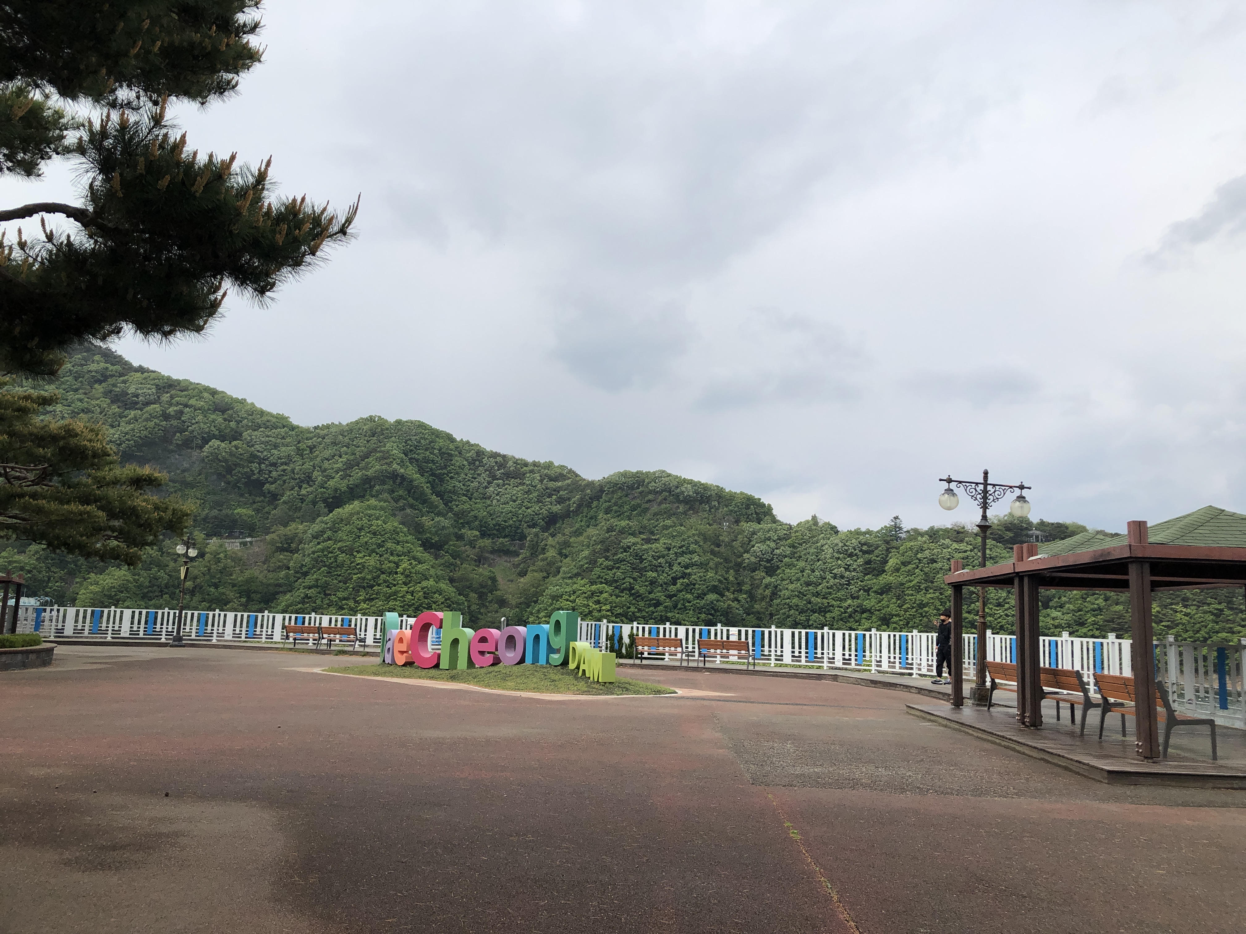 대청호를 따라 쉴 수 있는 벤치와 정자가 있습니다. 그리고 계단 아래에는 LOVE 사랑의 좌물쇠 구조물이 있어서 몇몇 커플들이 자물쇠를 잠가놓고 갔어요. 저희는 내려가지 않고 영어로 대청호가 크게 써져있는 기념물 앞에서 사진을 찍었습니다.