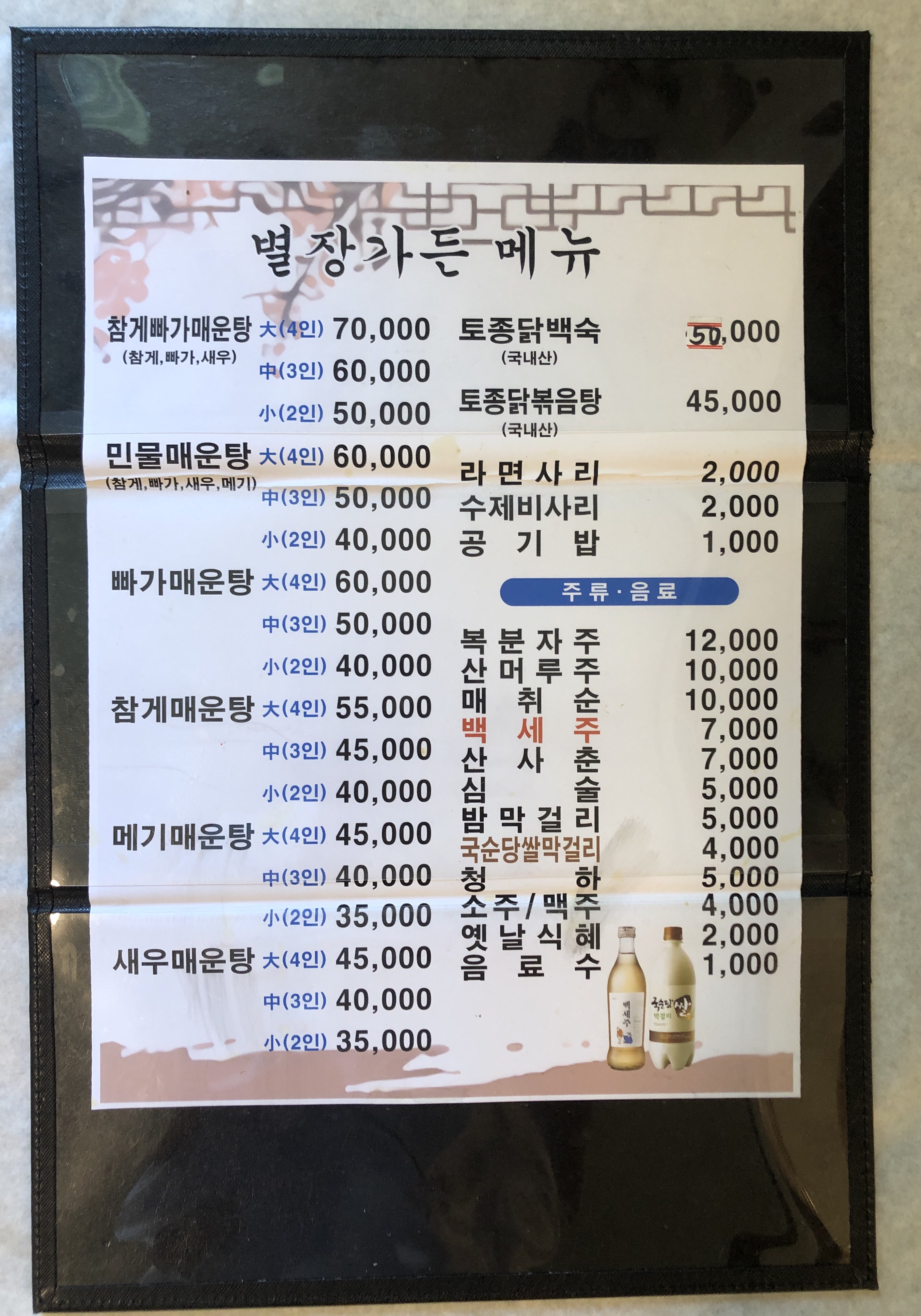 메기와 닭은 국내산이고 참게와 빠가사리는 중국산을 씁니다. 예전에 탑정호 주변 식당에서 참게를 국내산으로 속여서 팔았다는 뉴스를 본 적이 있습니다. 그 이후로 정직하게 원산지 표기를 하고 있나봅니다.