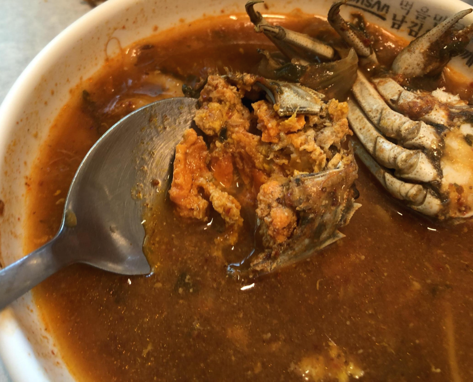 참게매운탕은 참게껍데기에 알과 내장, 그리고 다리에 붙어있는 살이 메인인 것 같아요. 참게 껍데기 내용물을 잘 긁어먹고 (젓가락으로 속 안까지 파야함. 내장 막?을 빡빡 긁어야 내용물이 나옴) 다리쪽 살을 껍데기 채 씹어드시면 됩니다.