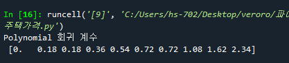 - 단항계수 feature를 2차 다항계수로 변경하면 다음과 같다