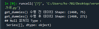 - 152줄: get_dummies는 원-핫 인코딩을 말한다. 고유값을 뽑은 다음 이 값들을 column에 있는 경우는 1, 없는 경우를 0으로 변환한다.