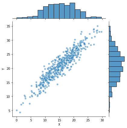 - 32줄: jointplot은 scatter한 뒤 histogram을 함께보는 그래프이다.