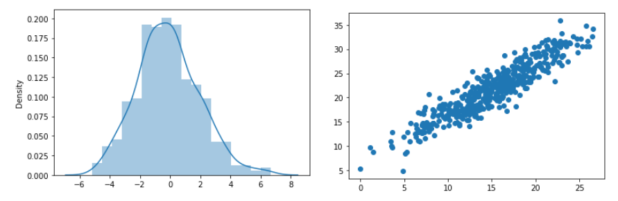 - 16줄: X=np.random.normal(0, 5, sample_size) 은 표준편차 0와 평균값 5의 정규분포에서 샘플링함