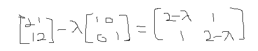 (2-λ)^2-1=0 의 고유 상수λ(고유람다)는 3 or 1이 된다. 이를 Ax=λIx에 적용하면