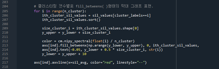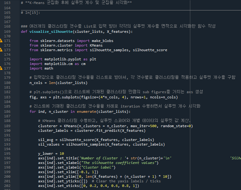 - 169줄: visualize_silhouette 로 군집을 시각화