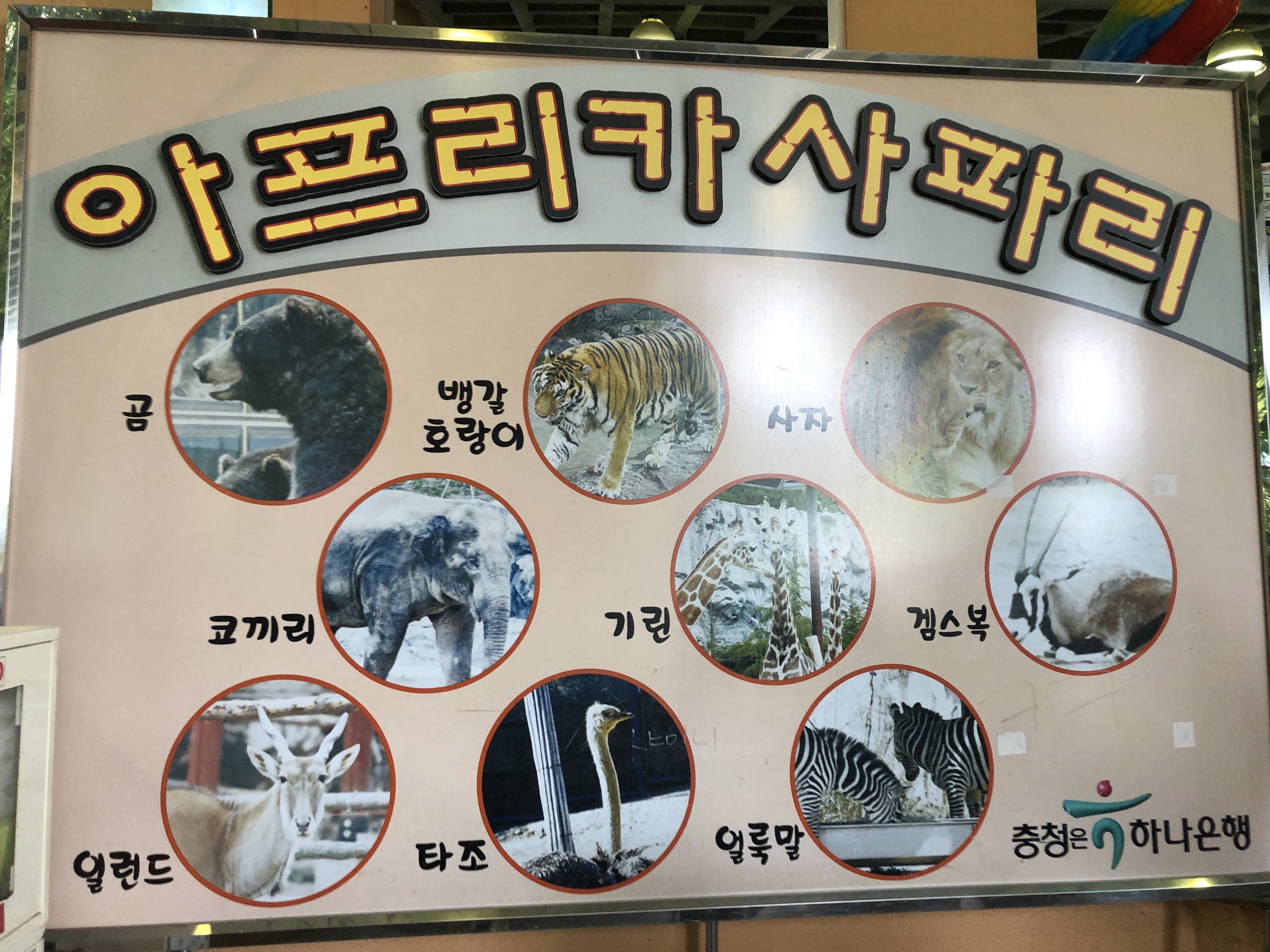 대전 오월드 아프리카 사파리에는 곰, 호랑이, 사자, 코끼리, 낙타, 기린, 겜스복, 일런드, 타조, 얼룩말, 하이에나 등이 있습니다. 책에서 그림으로만 봤던 동물들을 실제로 눈 앞에서 만나니까 아이가 정말 신기해했습니다.