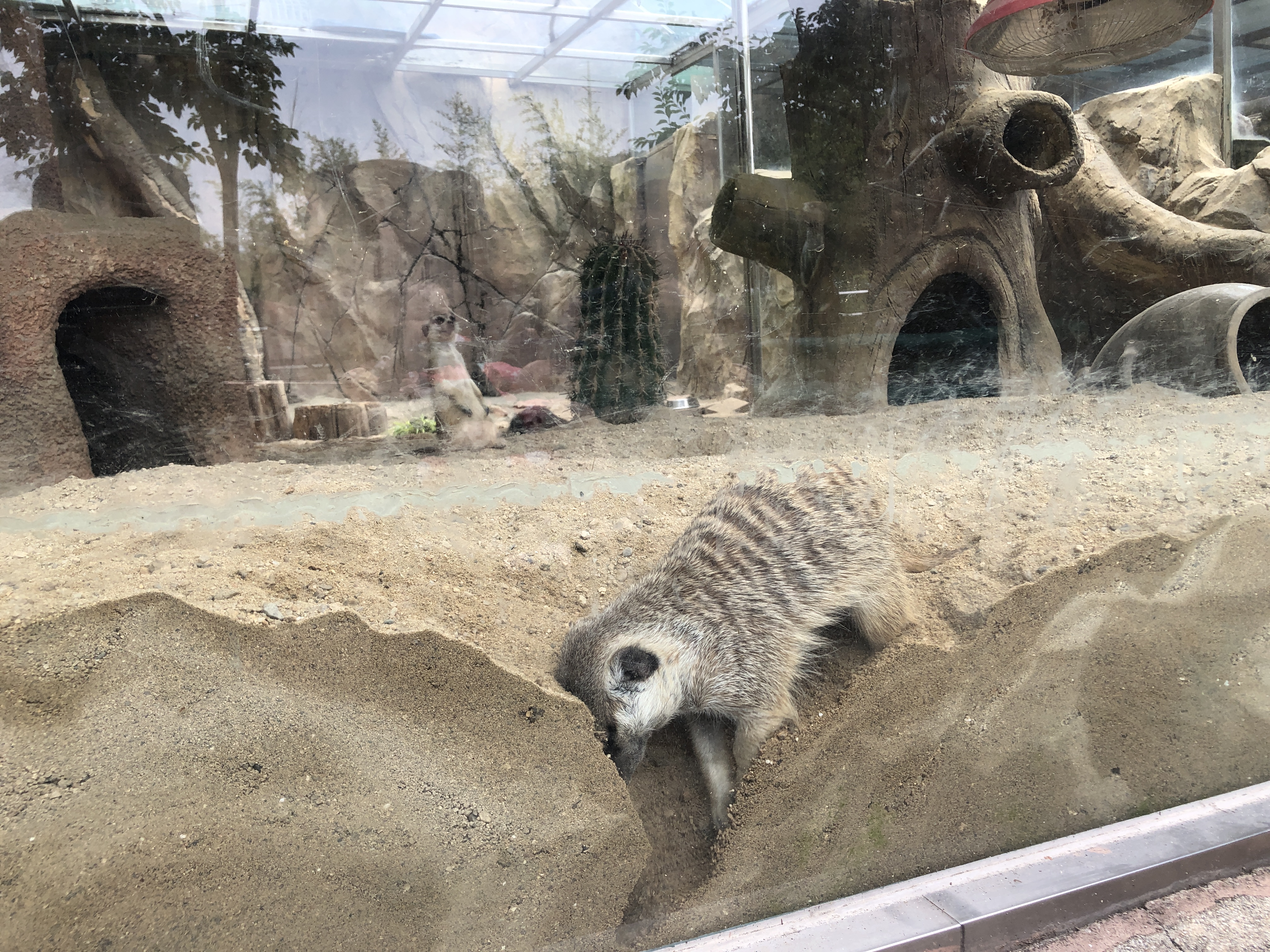 지나가다가 자꾸 모래를 파서 나가려고 하는 미어켓을 보았습니다. 귀엽긴 한데 지켜보는 내내 좀 짠했습니다. 모래를 아무리 파도 나갈 수 없는 유리벽... 좁은 케이지 안에서 얼마다 덥고 답답할까요? 아무리 더운지방에 사는 동물들이지만 원래 우리나라처럼 습한기후에 사는 생물들이 아니니 좁은 곳에 갇혀있으면 숨막힐 것 같아요.