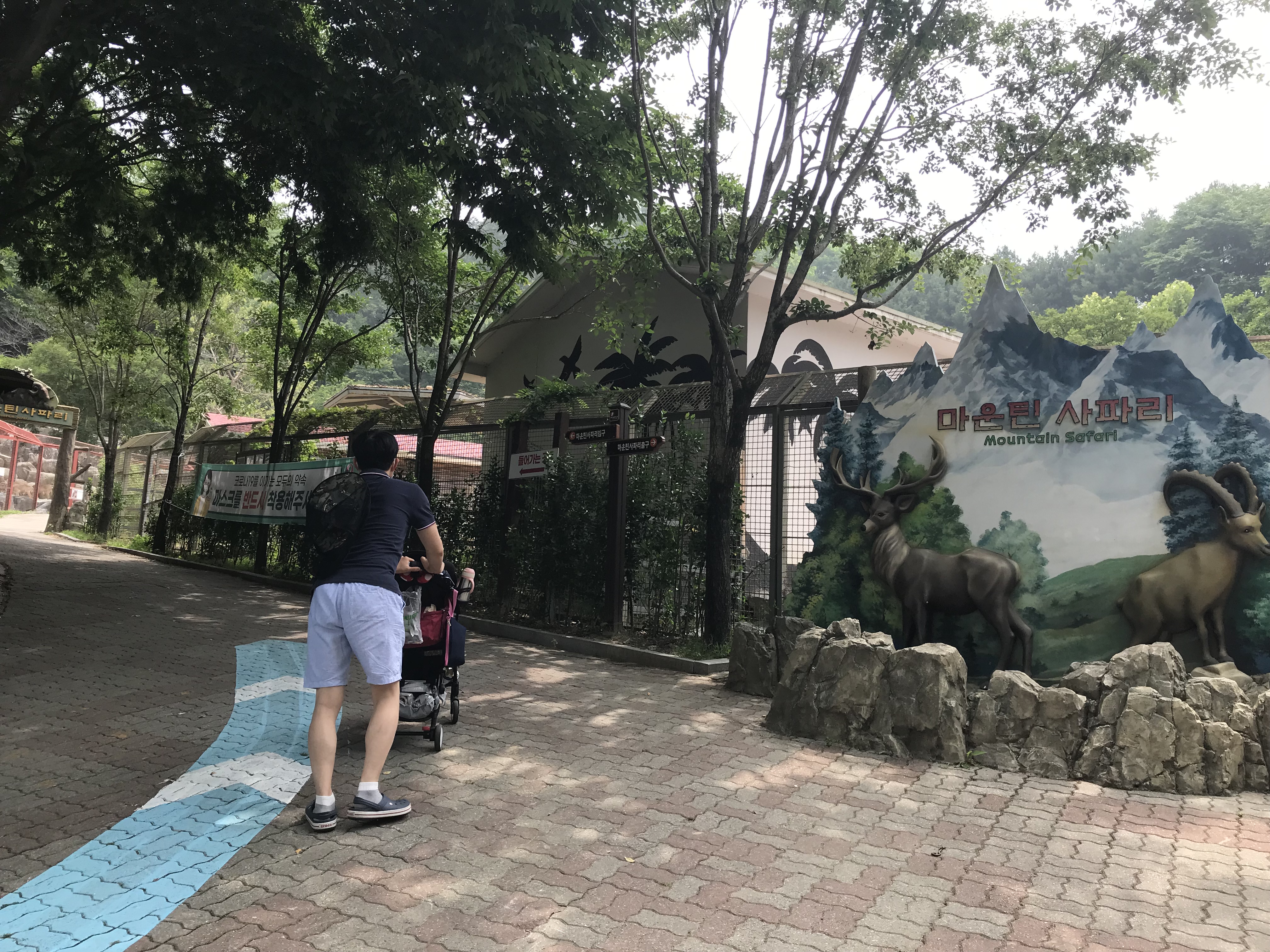 버스에서 내리면 바로 옆에 어린이 동물원 마운틴사파리로 올라가는 계단이 보입니다. 저희는 유모차가 있어서 계단으로 올라가지 않고 옆에 언덕길로 돌아서 올라갔어요. (이 때 10시 반쯤 되었는데 덥고 힘들었음...)