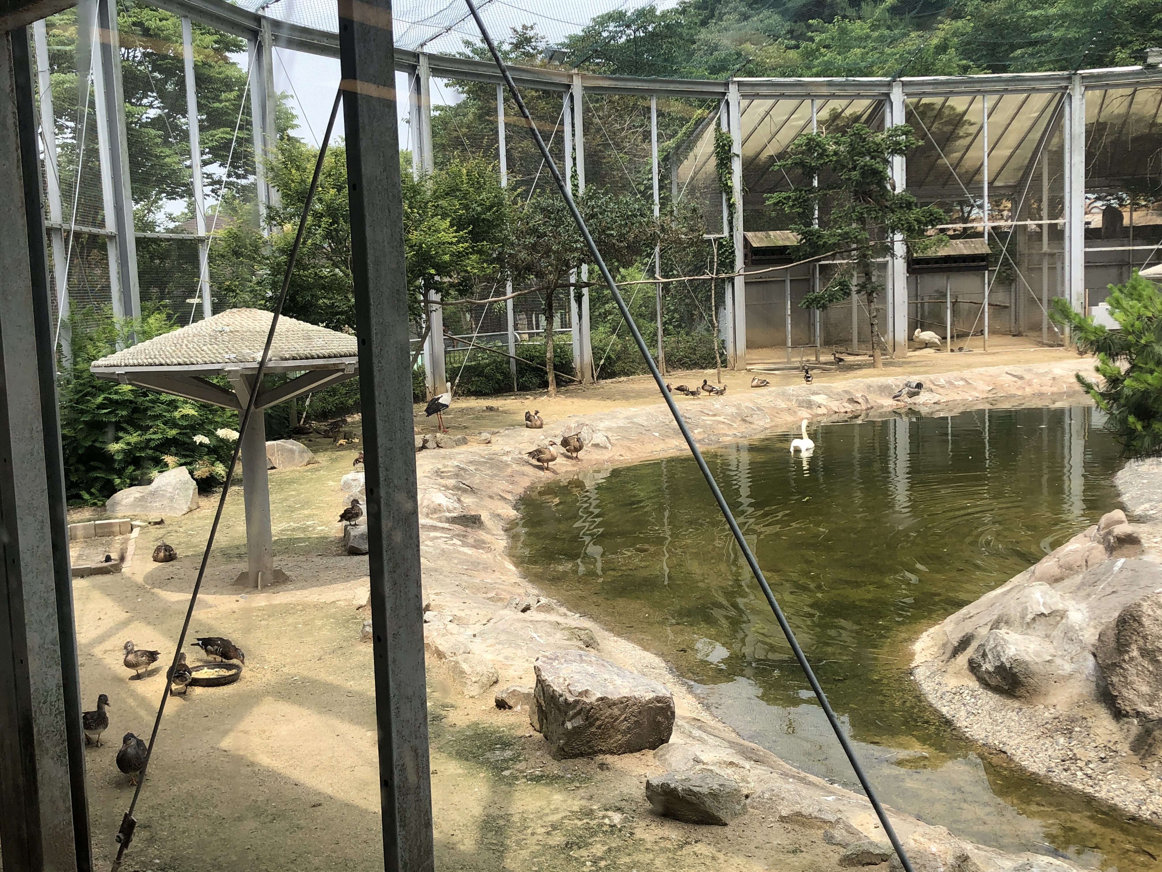 원숭이장 옆에는 좀 더 쾌적해보이는 새장 포레스트가든이 있습니다. 여기에는 오리와 백조와 같은 새가 살고 있어요. 그리고 새장 옆에는 바로 앵무새관(건물)이 있는데, 에어컨이 틀어져 있어서 좀 시원하고 알록달록한 예쁜 앵무새들을 보실 수 있습니다! (여기는 사람이 없는 작은 건물 안이라서 아이를 그냥 풀어놓을 수 있습니다.)