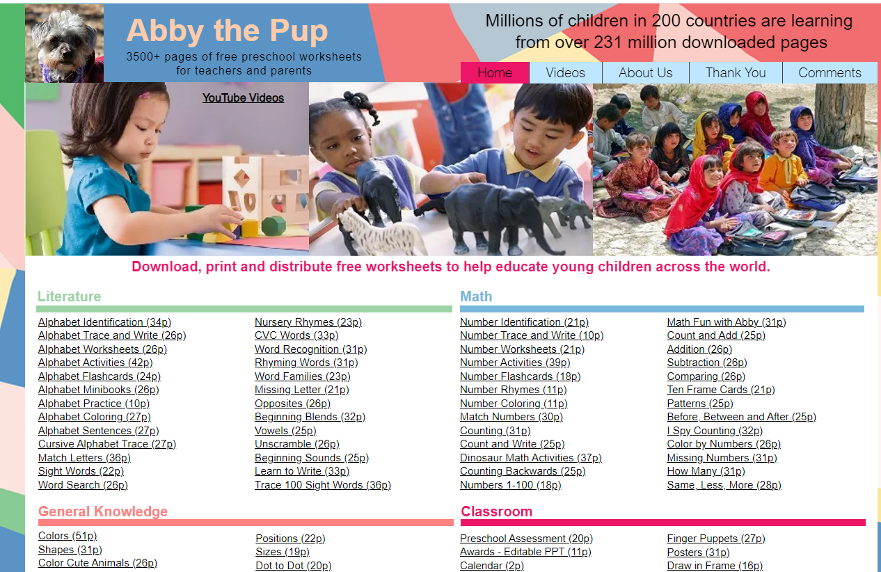 3500+ pages of free preschool worksheets to download and share. Millions of children love learning from these colorful, fun and interesting worksheets. Abby the Pup includes alphabets, numbers, colors, shapes, activity books and many other materials to kee