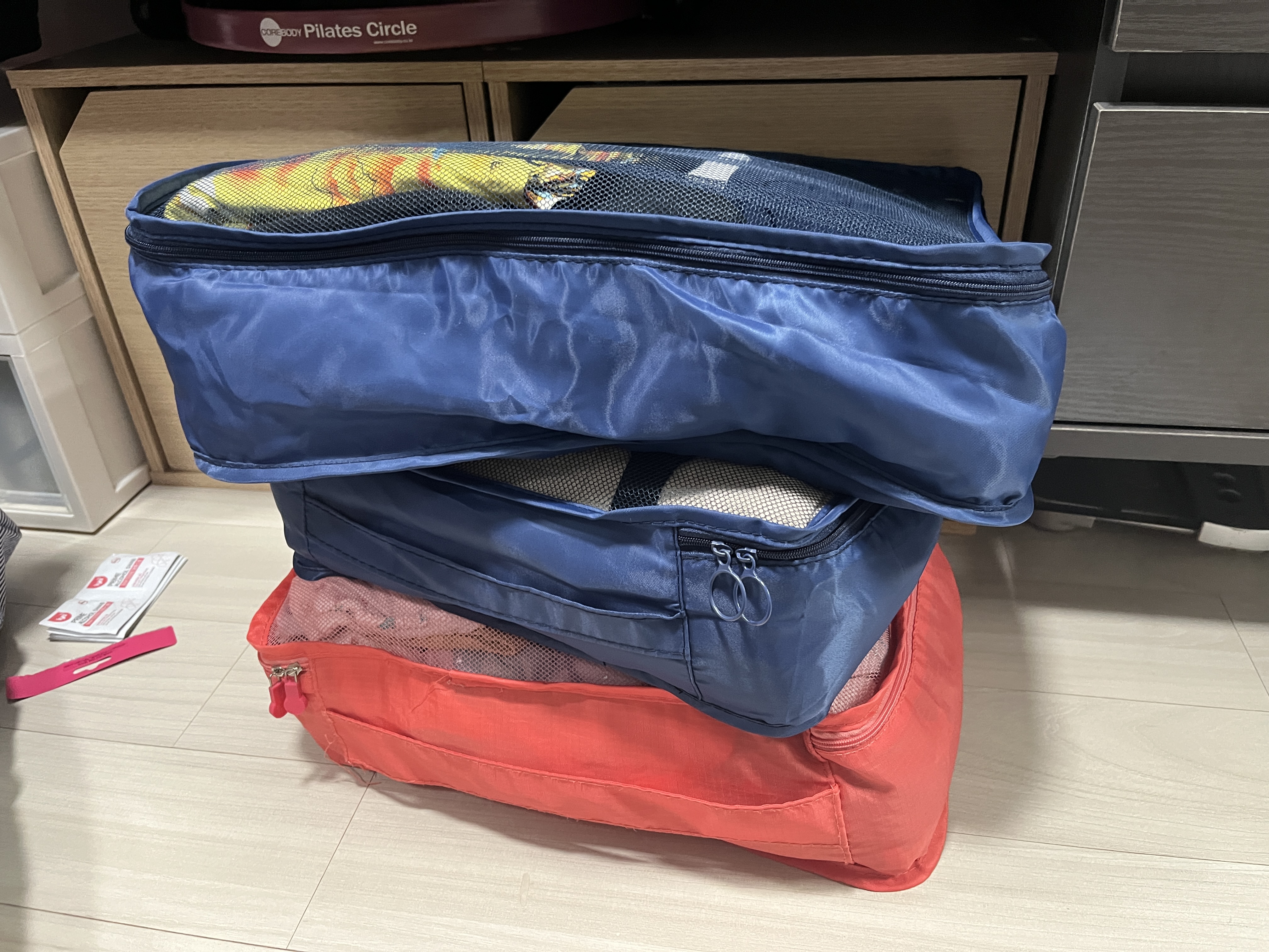 다음으로 가장 필요한 것은 여름옷. 미니멀 라이프를 실천하기에 뭐든지 필요한 것만 최소로 가져간다고 했는데, 4일치 입을 옷 무게만 해도 6kg이나 되니...나머지 수영복, 신발, 잡화, 의약품, 비상식량 등 일상 생활용품을 어떻게 가져가면 좋을지 걱정이 되었다. 40L가방은 충분히 컸고, 무게자체가 문제가 된 케이스다.