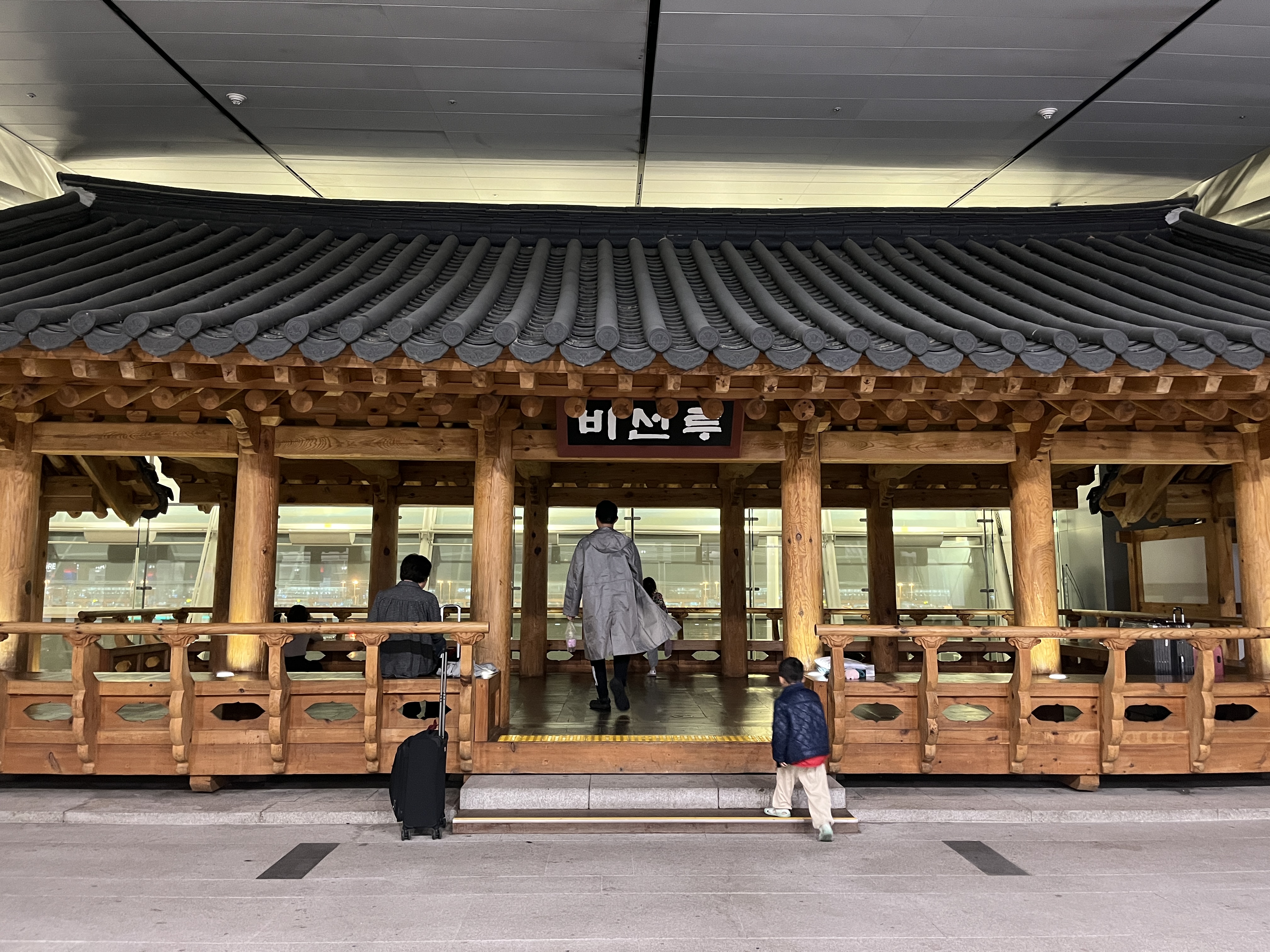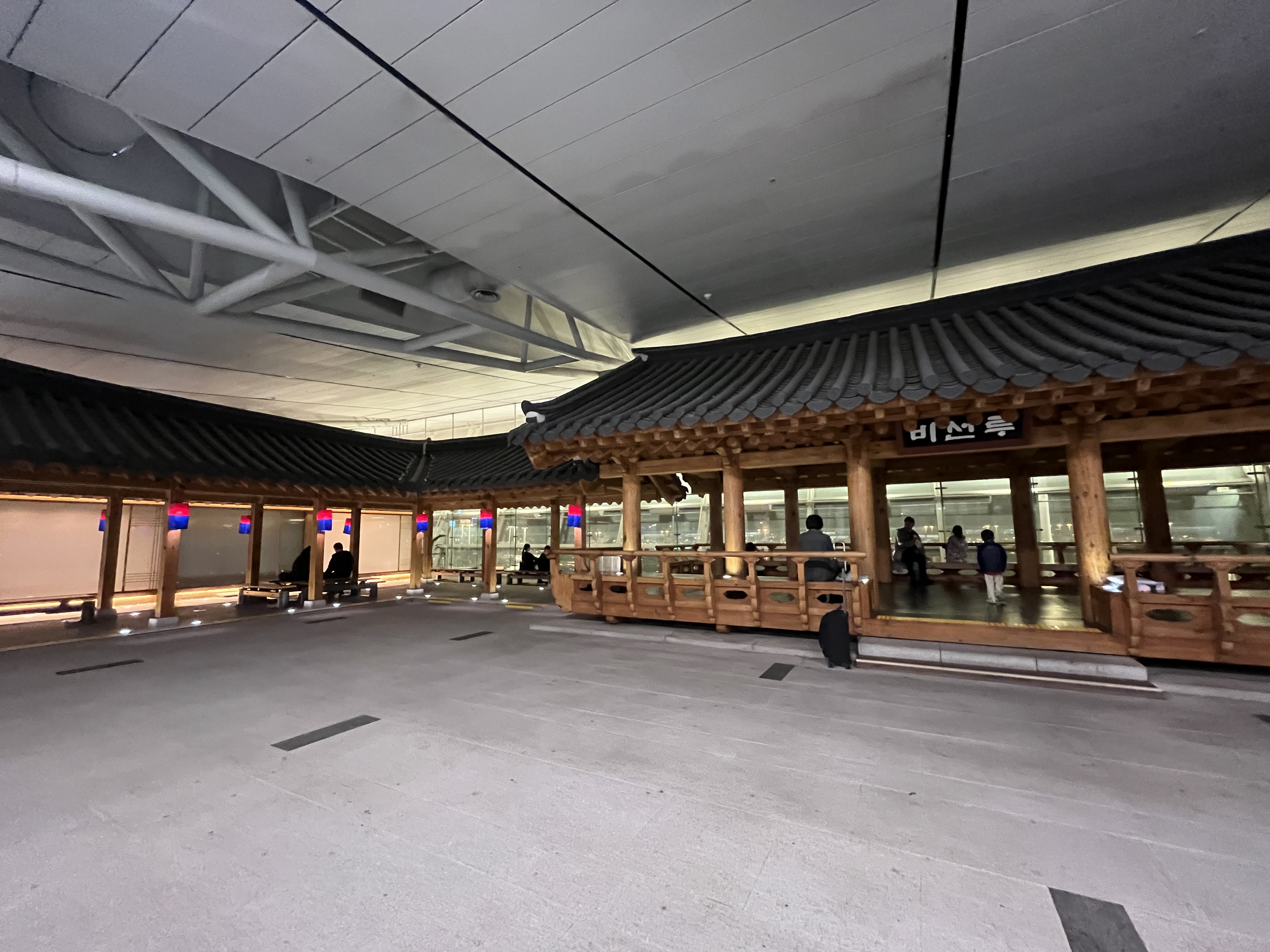 인천공항 제1터미널에 '비선루'라고 비행장을 볼 수 있는 실내전망대가 있다고 해서 가보았다. 위치는 2층 식당가에서 한경정을 지나 쭉 걸어가다 보면 기와지붕을 볼 수 있는데 그 안으로 들어가면 된다. 밤이어서 그런지는 모르겠지만 생각보다 어두워서 여기에 전망대가 있다고? 라고 생각하다가 그냥 지나쳐버릴 수 있는 곳이었다. 끝까지 들어가다 보면 조용히 쉴 수 있는 커다란 정자가 있다. 찾아보니 비선루는 24시간 무료개방이라고 하니 공항 노숙을 한다면 여기서 해도 괜찮을 것이다.
