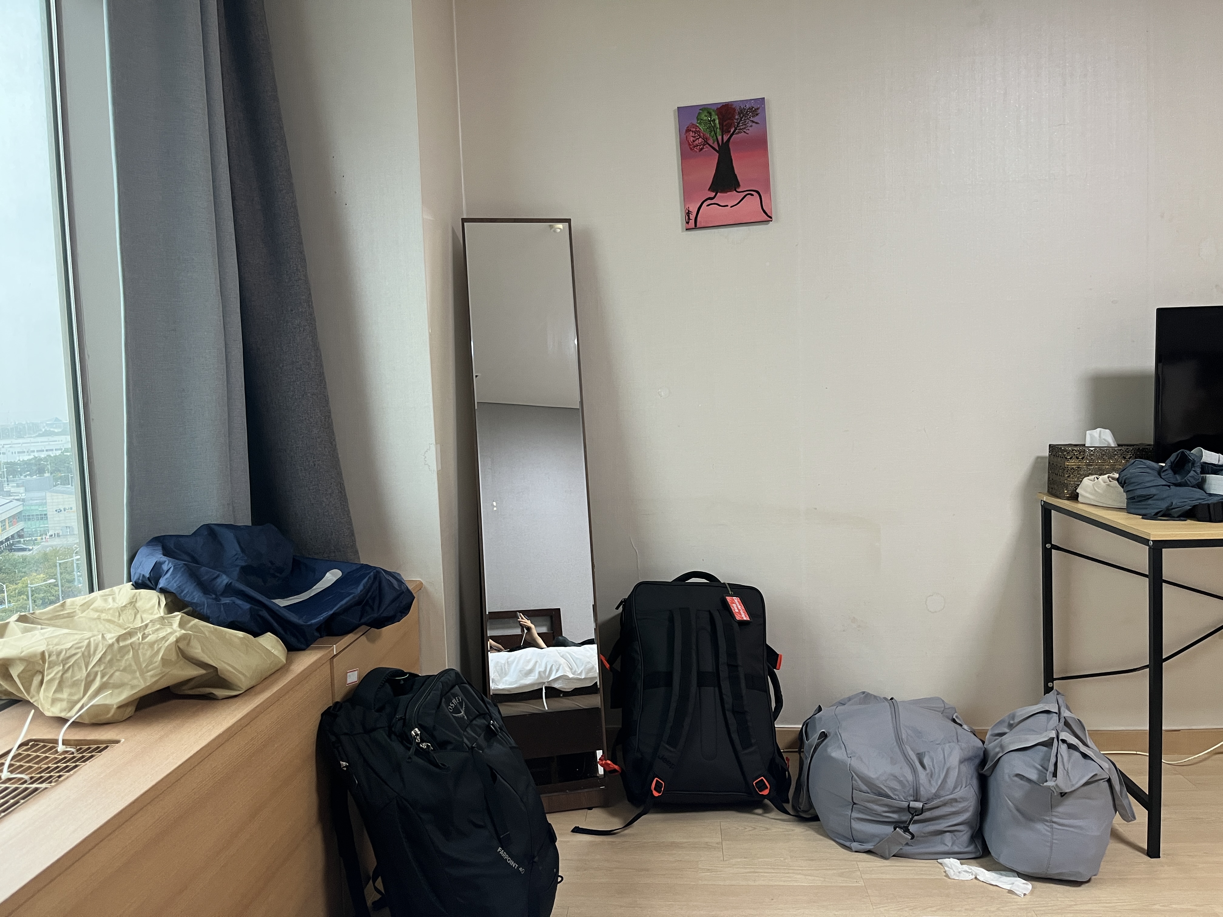 인천공항 제1터미널에서 3번 공항셔틀버스를 타고 2정거장만 가면 도보로 2분 거리에 오피스텔빌딩같은 건물이 있다. 에어비엔비처럼 무인으로 운영되는 시스템이라 배정받은 호실에 비밀번호를 입력하면 들어갈 수 있다. 인천공항 고고하우스 숙소는 너무 좋았다. 드라이기, 칫솔치약, 샴푸, 비누가 다 있었다. 욕조는 없었지만 냉장고와 통돌이 세탁기는 있어서 급하게 쓸 수 있었다. (건조기는 없었음)