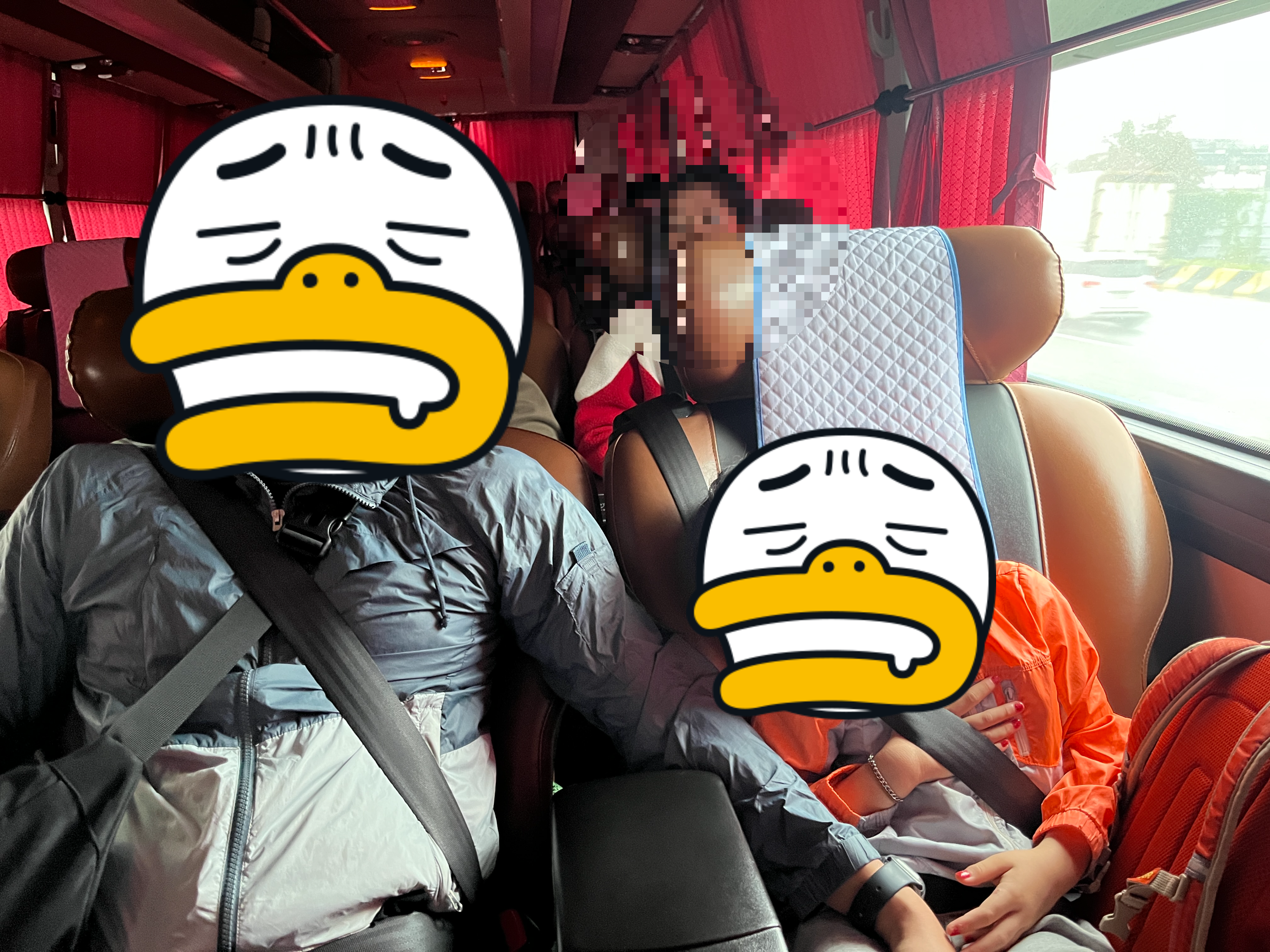 버스를 타기 전부터 진이 다 빠진 상태로 얼마 안 가서 우리 가족 모두 곯아떨어졌다. 나는 잠에 들지 못해서 깨어있었는데 비 오는 날 고속버스를 타는 건 정말 위험해 보였다. 엄청 빨리 달리는데 버스가 높으니까 사고 나면 다 죽겠다 싶었다. 버스를 타고 2시간이 지날 즘 화장실에 들릴 법도 한데 마지막 휴게소까지 지나서 이대로 공항까지 참아야 하나 고민하던 중 누군가 톨게이트 근처에서 화장실에 가고 싶다고 말해서 화장실에 갈 수 있었다. 화장실에 들렸다가 30분 안에 공항에 도착할 수 있었다.