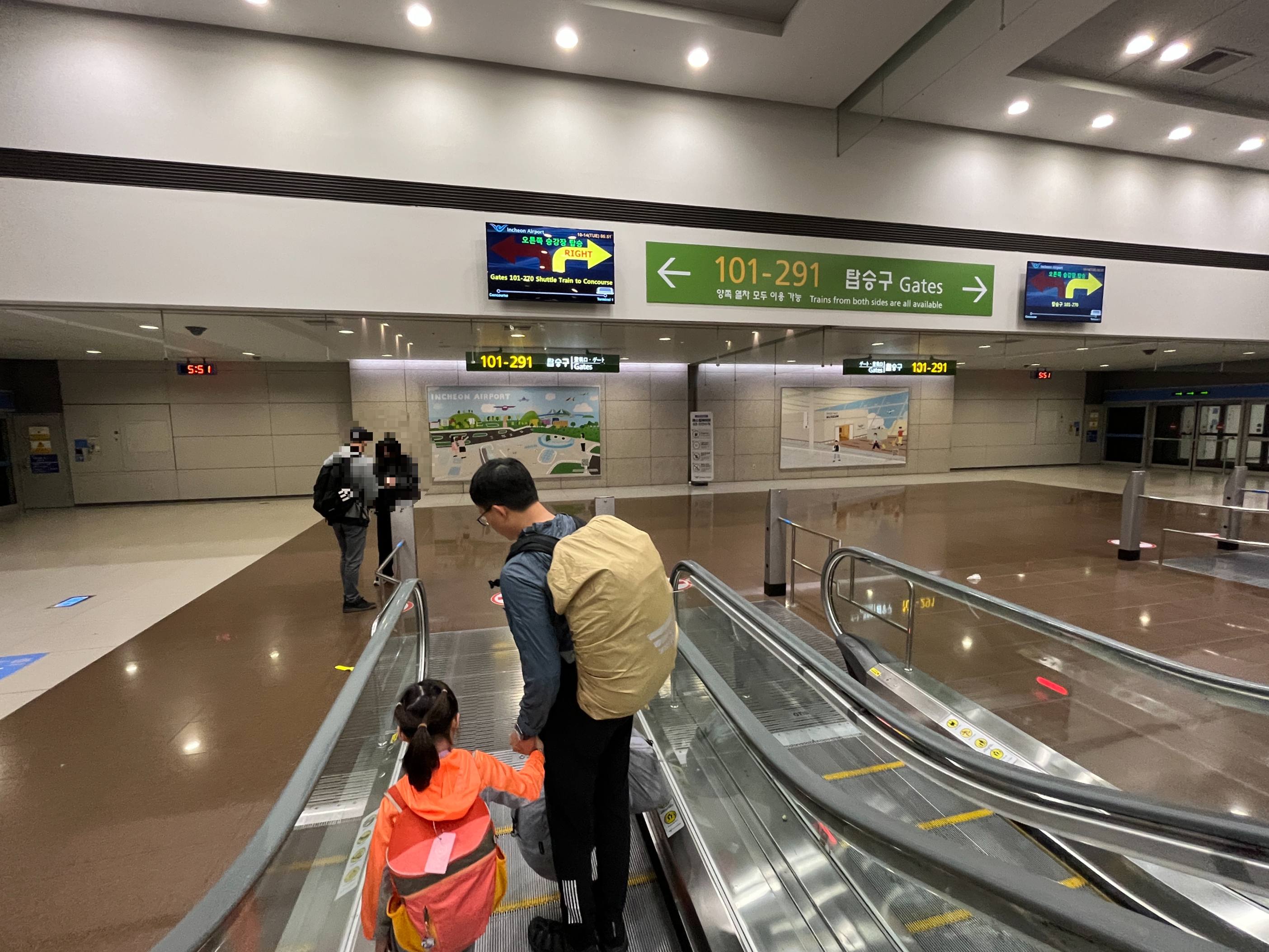 체크인 후 면세구역의 상점들이 오픈하기 전이었고 화장품, 주류, 가방과 같은 명품에는 관심이 없어서 그냥 구경은 패스했다. 아이들과 같이 가면 게이트 앞에 무조건 미리 가서 자리 잡고 쉬는 게 가장 좋은듯하다. 피곤한데 흥분하면 말도 안 듣고 행동이 아주 엉망이니… 우리 게이트는 123번이었는데 에스컬레이터를 타고 아래로 내려가서 셔틀트레인을 타고 또 가야 했다. 카트를 끌고 갈 수 없어서 애들이 다리가 아프다고 찡찡거렸다. (참고로 셔틀트레인을 한번 타면 다시 되돌아갈 수 없다)