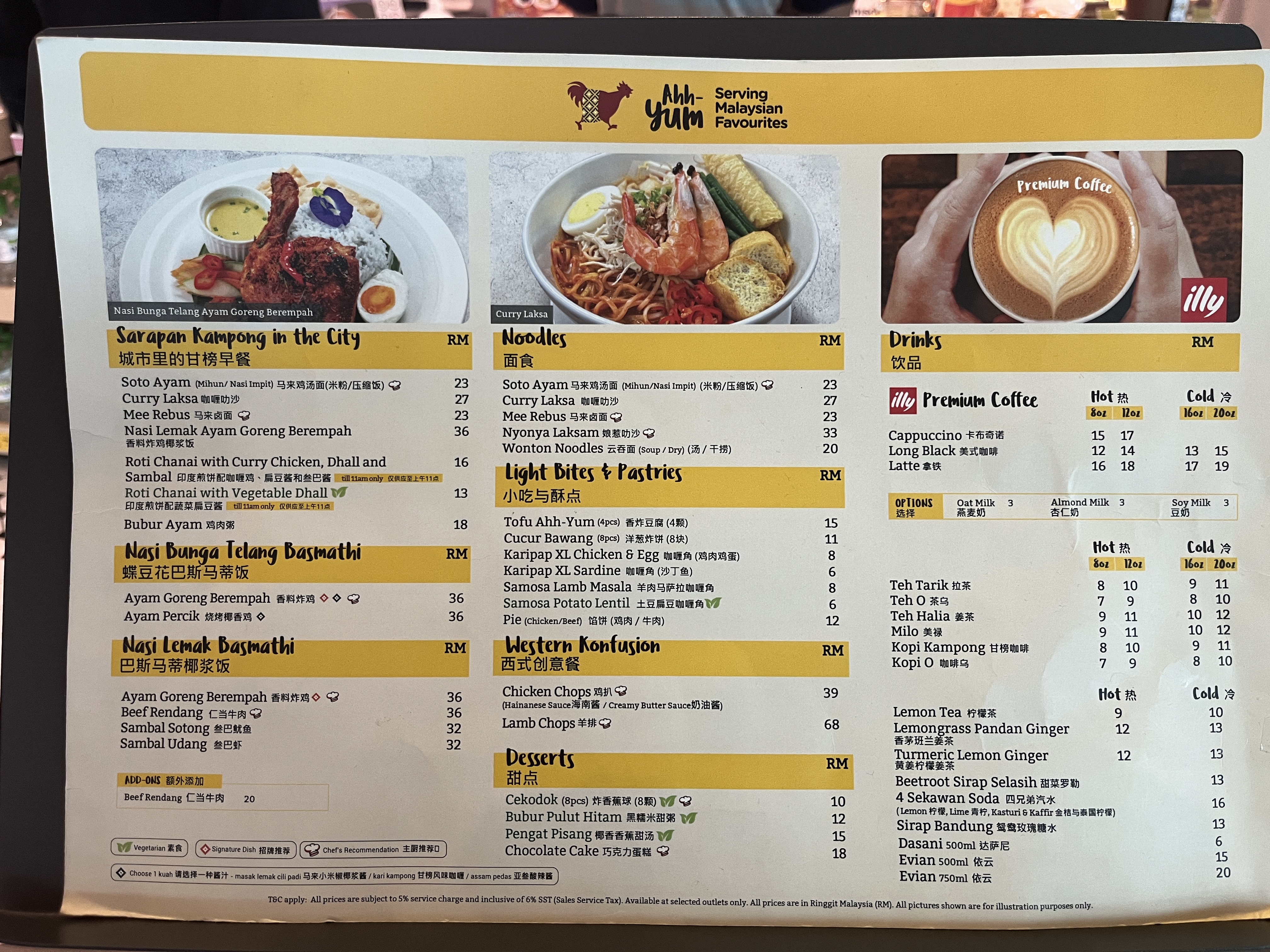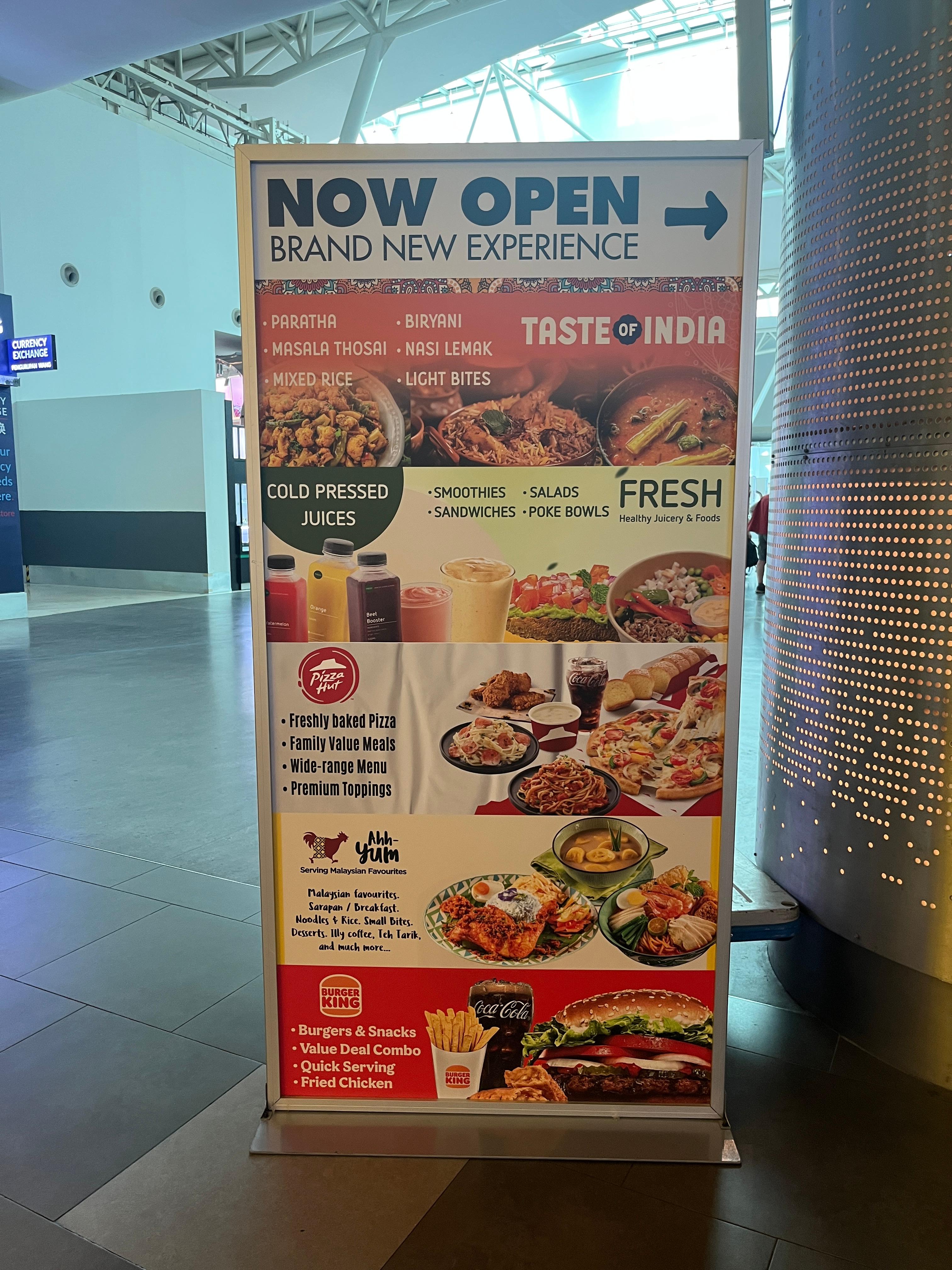 분명 기내식을 2번씩 먹었는데 왜이렇게 배가고픈걸까? 저녁비행기인데 환승시간이 길어서 면세구역에서 먹기로 하고 기내식은 따로 시키기 않았다. 쿠알라룸프르 공항 3층에는 버거킹, 인도음식점, 피자헛, 샌드위치가게가 있는데 말레이시아에 왔으니 Ahh Yum이라는 말레이시아 체인점 식당으로 갔다.
