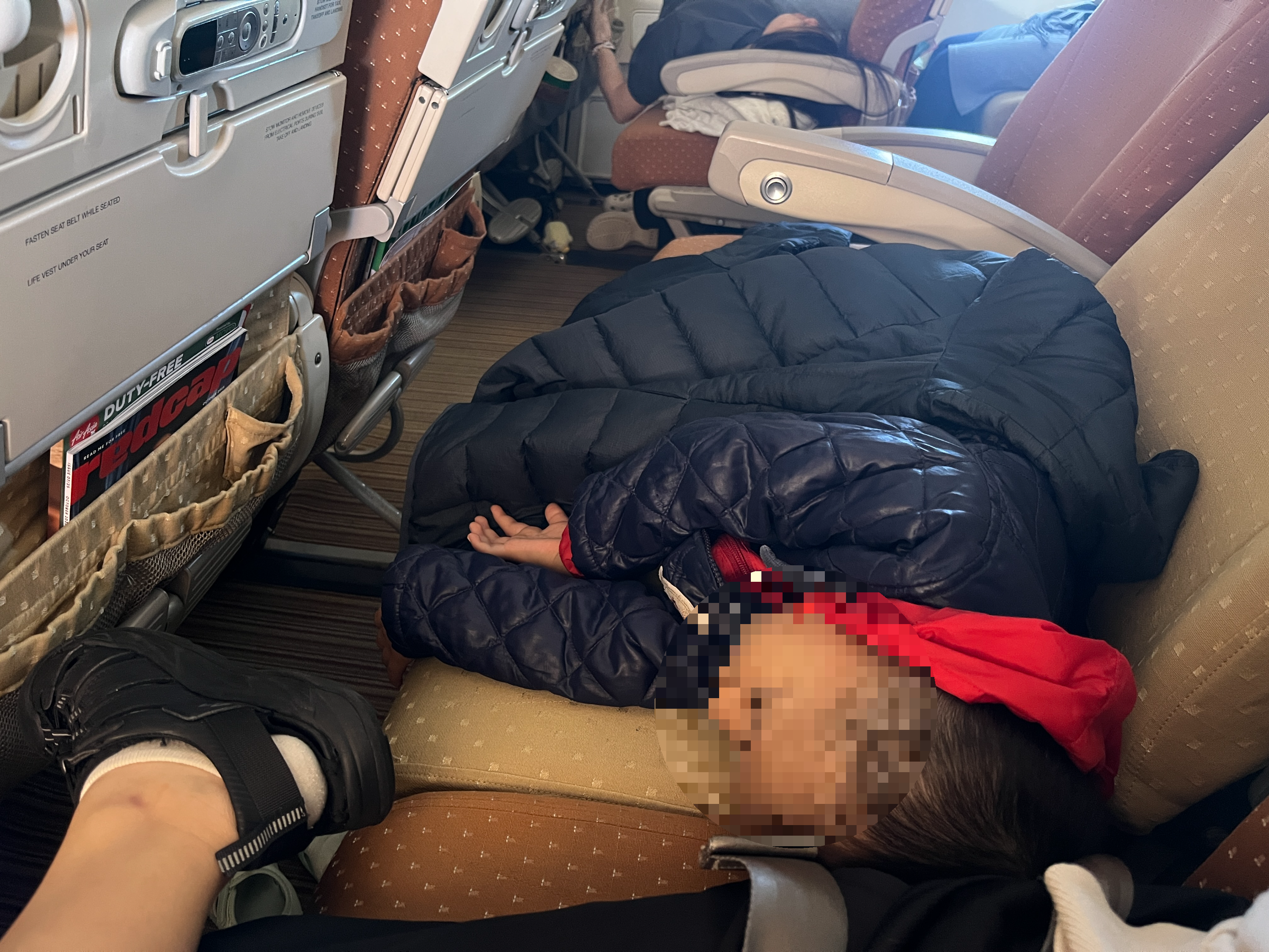 기내식을 먹고 잠들었는데, 10월 중순 기내 안은 얇은 가디건만 입기에는 쌀쌀했다. 원래 몸이 피곤하면 더욱 춥게 느껴진다. 둘째는 경량패딩을 이불처럼 덮고 누워서 잘 자고있다. 추위를 잘 타는 사람이라면 경량패딩 하나 들고타면 좋을듯하다.