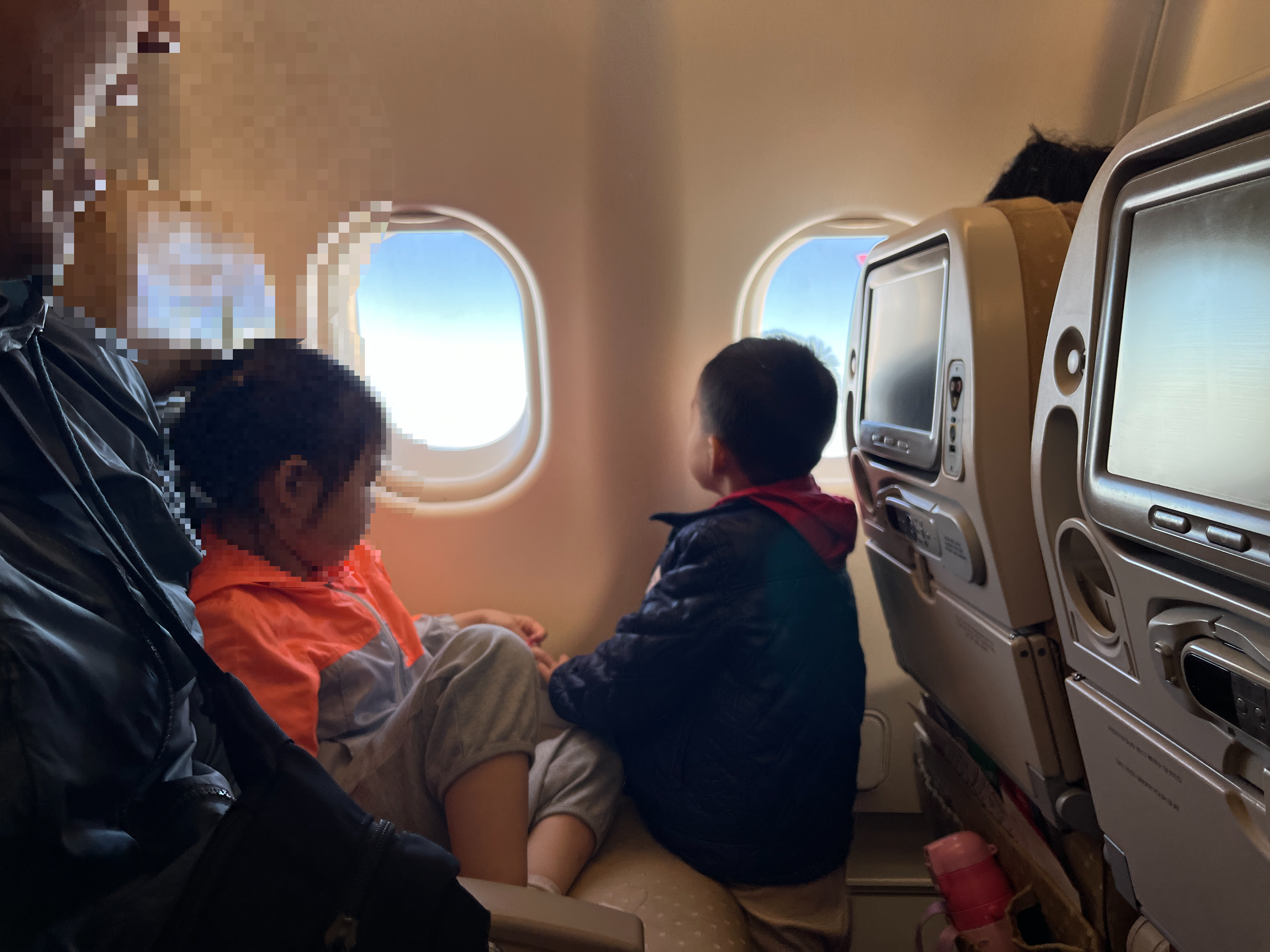 인천공항 게이트 앞에 있는 CU에는 샌드위치랑 김밥을 파는데 가격도 3000-4000원 대로 저렴해서 기내식을 먹기 전까지 약간의 허기를 달랬다. 7시부터 공항 내부를 구경하다가 아이들은 쪽잠을 잤다. 비행기 탑승시간이 30분가량 지연되면서 결국 9시 15분이 넘어서야 비행기가 이륙했다. 공항에서 새벽부터 거의 3-4시간은 있었는데 진이 다빠진다.