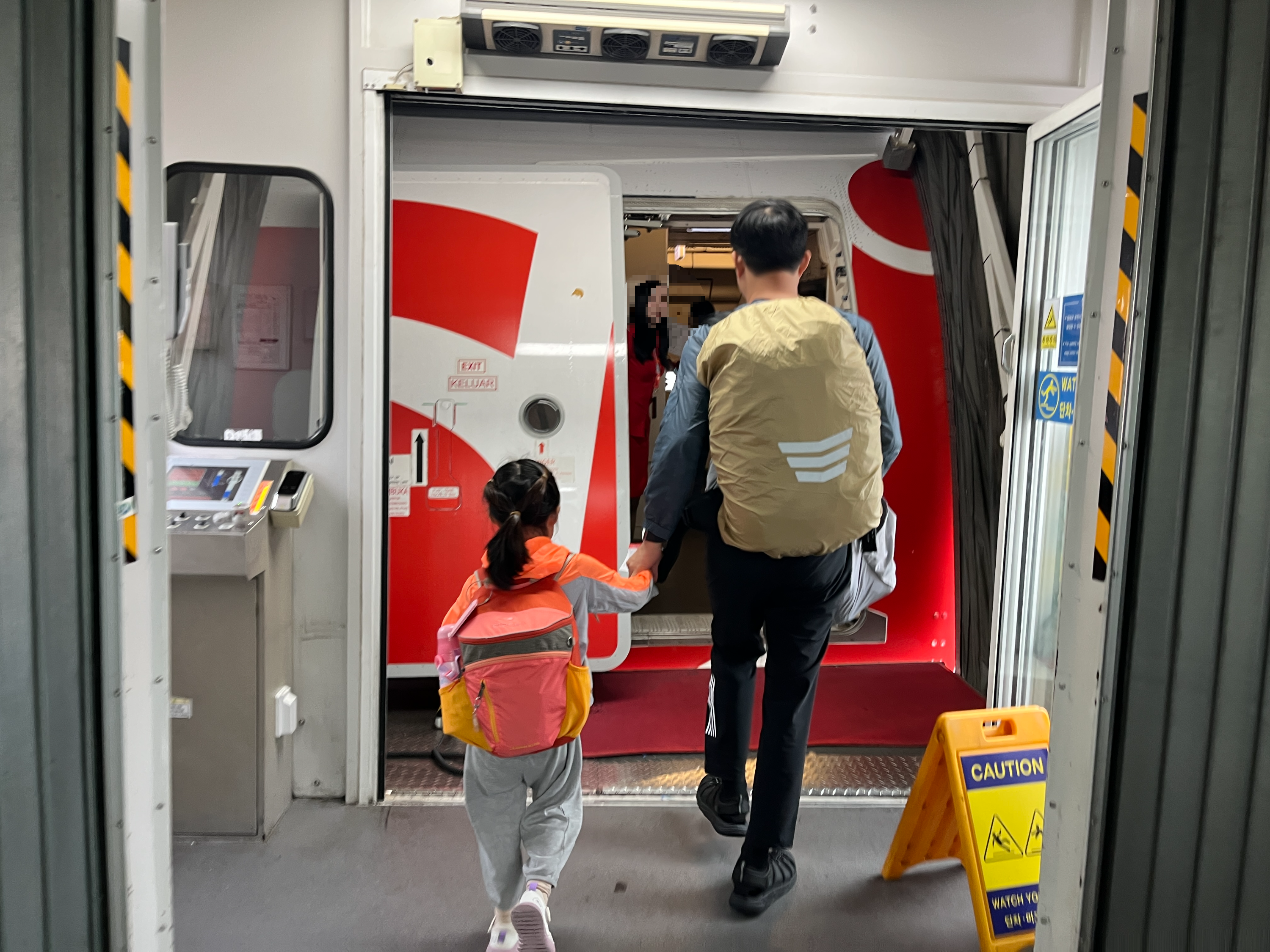 에어아시아는 마지막으로 체크인할 때 자릴우리가 체크인할 때 참 잘한건 창가자리로 4만원 주고 업그레이드 한 것이었다. 첫 번째 비행기는 좌석이 3-4-3 형태였는데 ABC-D가 아닌 BC-DE 로 나누어져서 좌석배정이 되었다. 창밖을 못보면 너무 아쉬울 것 같아서 E를 A로 바꿨고 아이들이 번갈아가며 창밖을 볼 수 있어서 즐거워했다. 둘째는 곰돌이가 뽀뽀하는 구름이 있다고 했는데 아이들의 상상력이 참 귀여웠다.