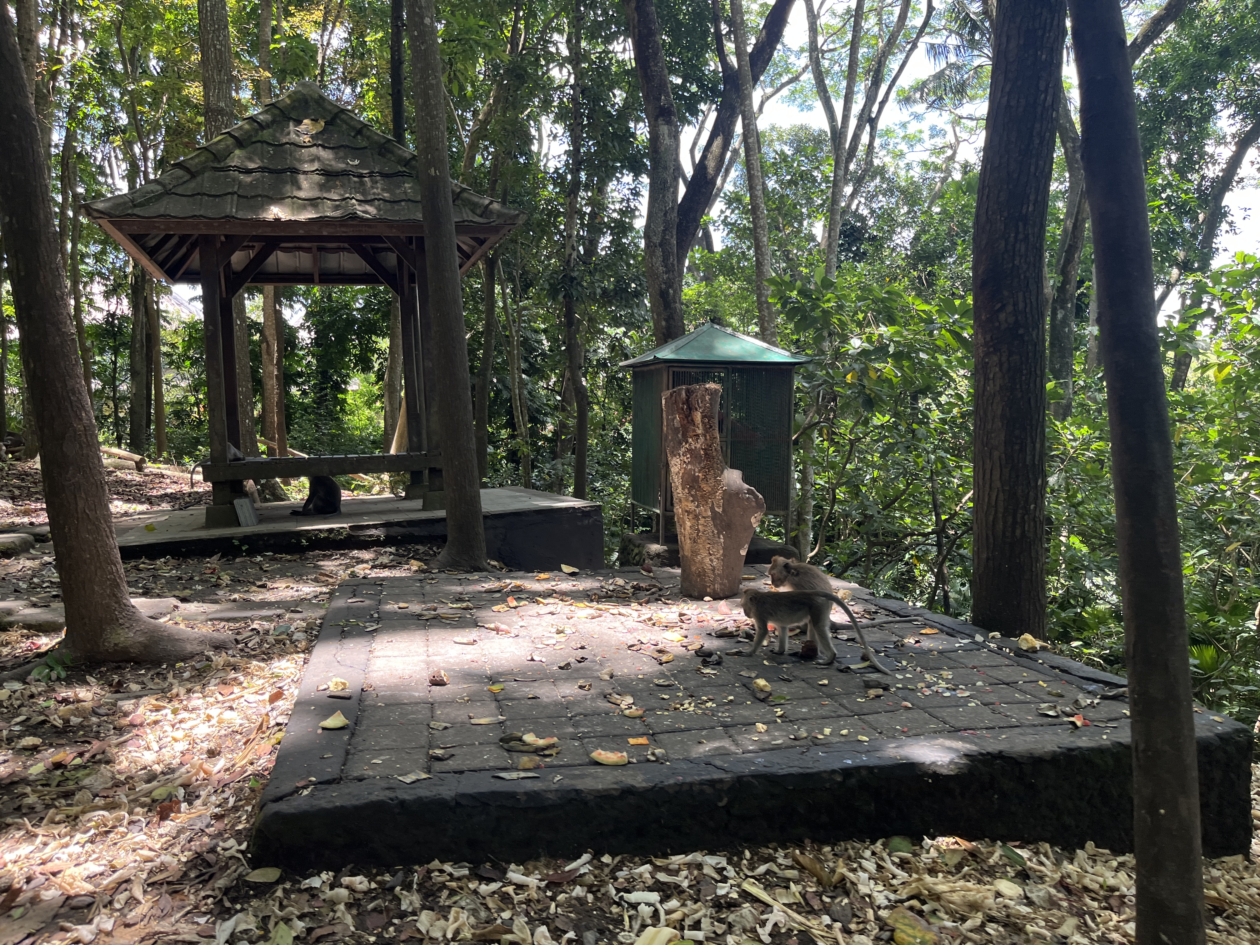 몽키포레스트는 사원이 2개가 있었는데 Main temple과 Spring temple 중에 원숭이와 사진 찍기에는 첫 번째 사원이 좋고, 예쁜 것은 연못이 있는 두 번째 사원이었다. 첫번째 Main Temple 내부는 들어갈 수 없었지만 사원 담장을 따라 원숭이들이 정말 많았다. 어미젖을 빨고 있는 원숭이부터 수도꼭지를 틀어서 물을 마시는 원숭이까지 다양한 원숭이를 구경할 수 있었다. 우리가 걱정하는 것만큼 사람들한테 달려들거나 그러지는 않았다. 사원 앞에 있는 커다란 정자(?)에서 서 있으면 시원한 바람이 불고 좋다.