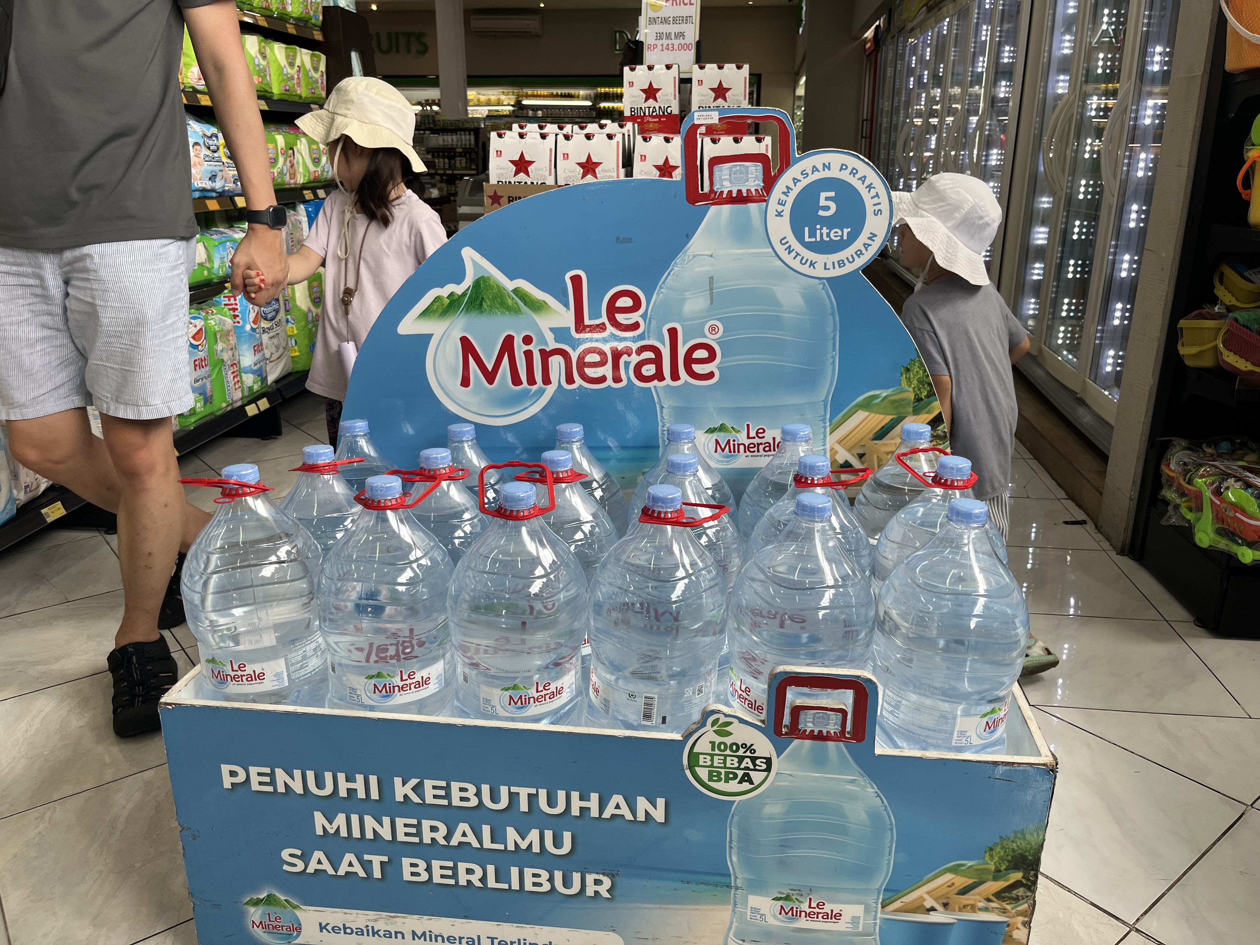 그리고 물은 5L를 사서 2L짜리 페트병에 덜어서 냉장고에 시원하게 만든 다음 보냉텀블러에 덜어마시는 게 가장 좋다. 그리고 발리는 지하수를 써서 물맛이 조금 이상하고 이 때문에 배탈 났다는 사람도 많아서 여행자들이 양치할 때는 생수를 쓰는 편으로 물을 금방 쓰기 때문이다.