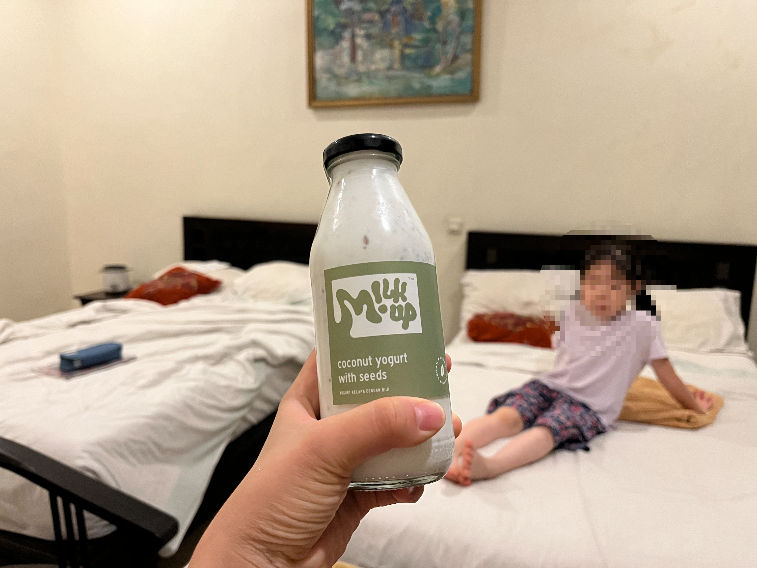 밖에서 사 먹으려면 비싸고 기다려야 하지만, 숙소에서 직접 요리하니 비로소 ‘집에 있는 느낌’이 났다. 처음 먹어본 인도네시아 집밥(?)에 아이들은 너무 맛있다며 무척 좋아했다. 혹시 몰라서 미니 전기포트를 챙겨 온 건 정말 잘한 선택이었다. 저녁을 먹었는데도 애들이 배가 고프다고 하는 바람에 원래는 간식으로 먹일 미고랭 라면과 코코넛요거트로 마무리를 했다! 애들 배가 빵빵한걸 보니 보기가 좋다.