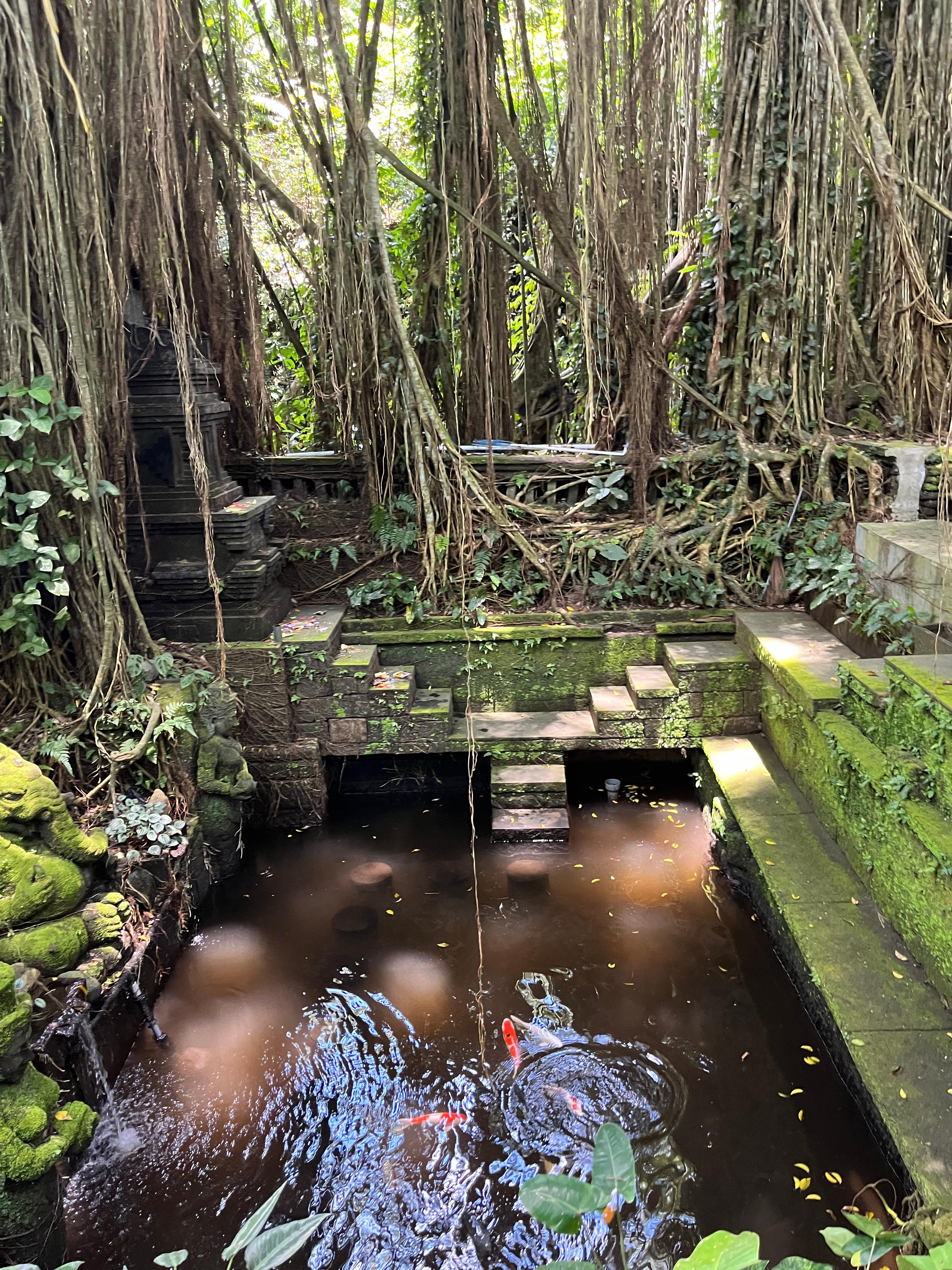 메인사원을 지나서 사람들이 가는 방향으로 걸어가면 힘들게 걸어 올라가지 않아도 된다. 우리는 화장실에서 반대방향으로 가서 되돌아오느라 시간을 많이 허비했다. 발리는 아래와 같이 정글이 있고 물이 흐르는 곳이 많아서 가까운 곳도 다리가 없어 빙 둘러서 돌아가는 경우가 많다. 몽키포레스트도 마찬가지로 아래에 계곡이 있었고 계단을 따라 쭉 내려가다 보면 대자연의 신비를 느낄 수 있는 스프링사원이 나온다.