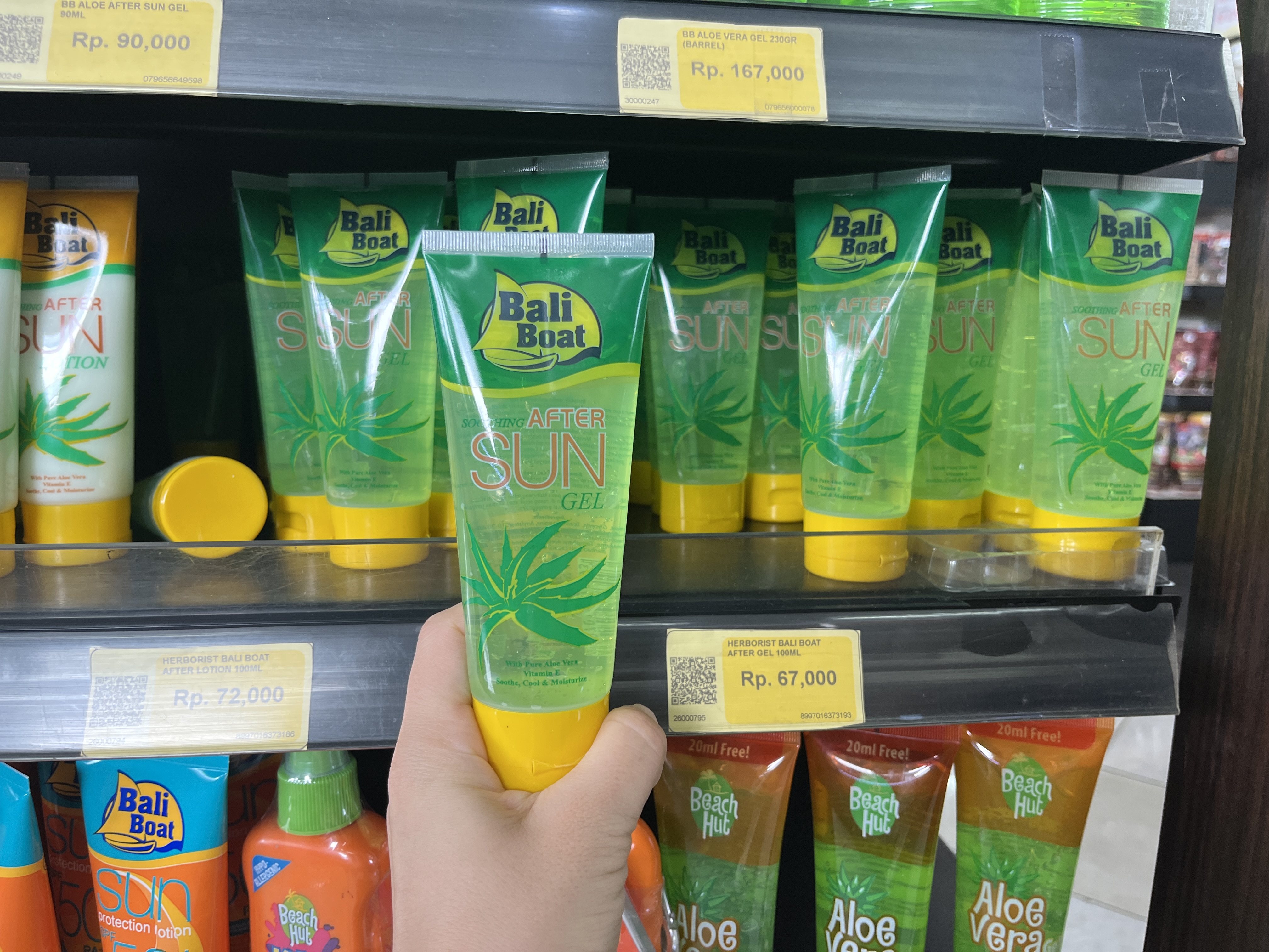 쇼핑백 (13.5K), Pepaya 파파야 (24.3K), Mangga Budi Raja 망고 (40K), Salak Pondoh 살락 (7K), Sari Nadi Krupuk Udang 새우맛칩 (식당에서 먹는 새우칩, 20K), Maton 카사바칩 (24K), Meru Bali cocoflat (강추 21K), Meru Bali coconut chip (21K), Indomie Goreng 라면 2개 (7K), Paletas wey 아이스크림 2개 (비추 72K,) 구아바주스 (28K), Milkup 코코넛요구르트 (강추 55K), 빈땅맥주 6캔 (108K), 치킨소시지 (17K), Bali boat 알로에 (강추 67K),과도 (17.5K)