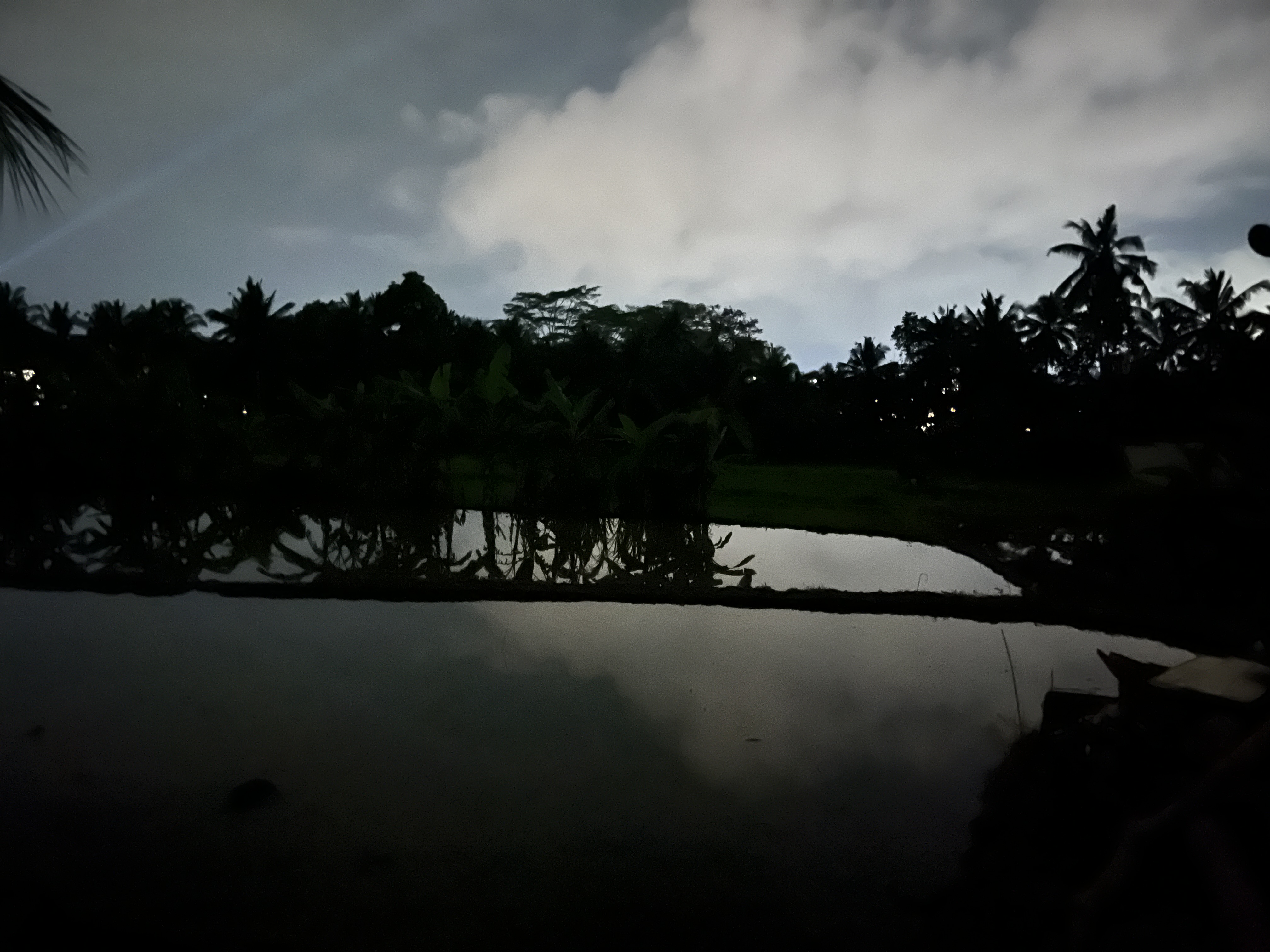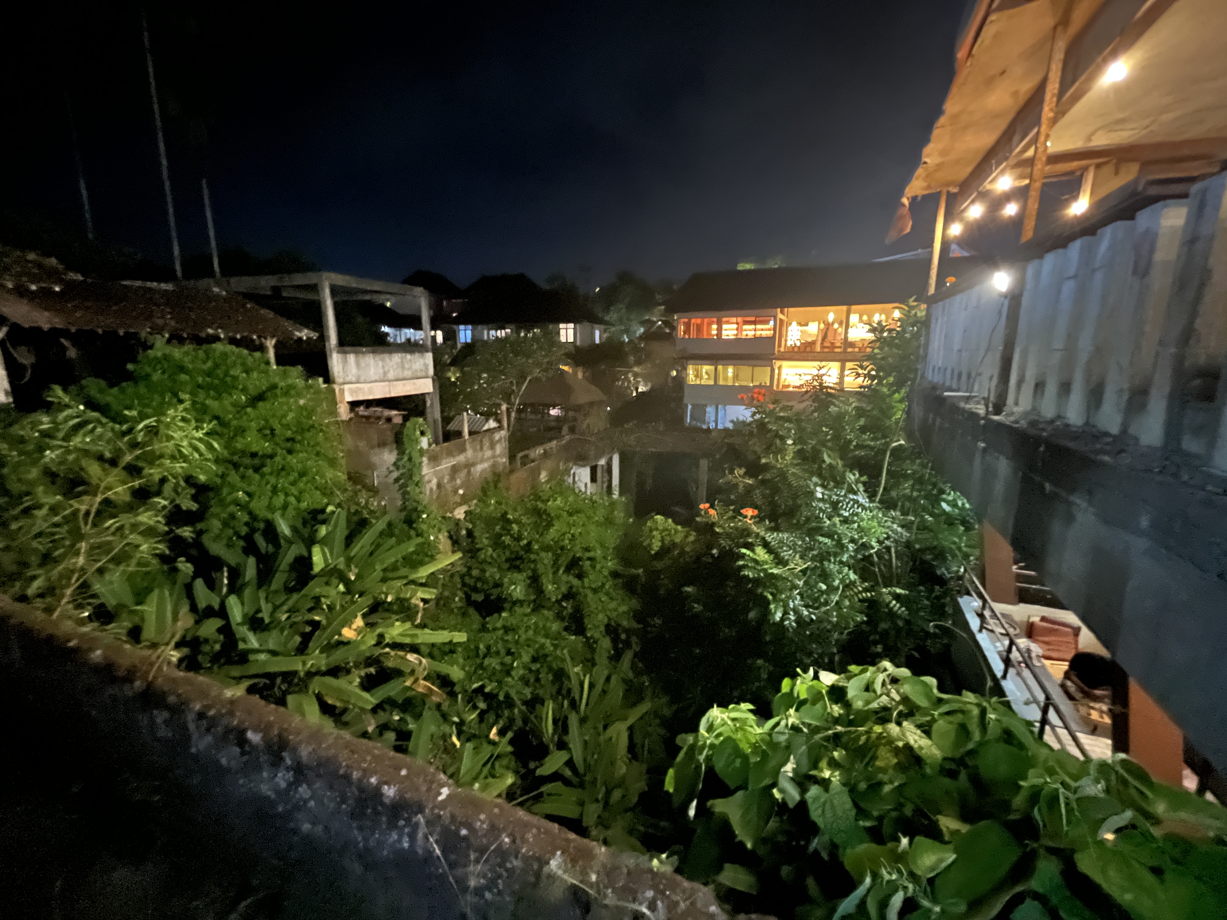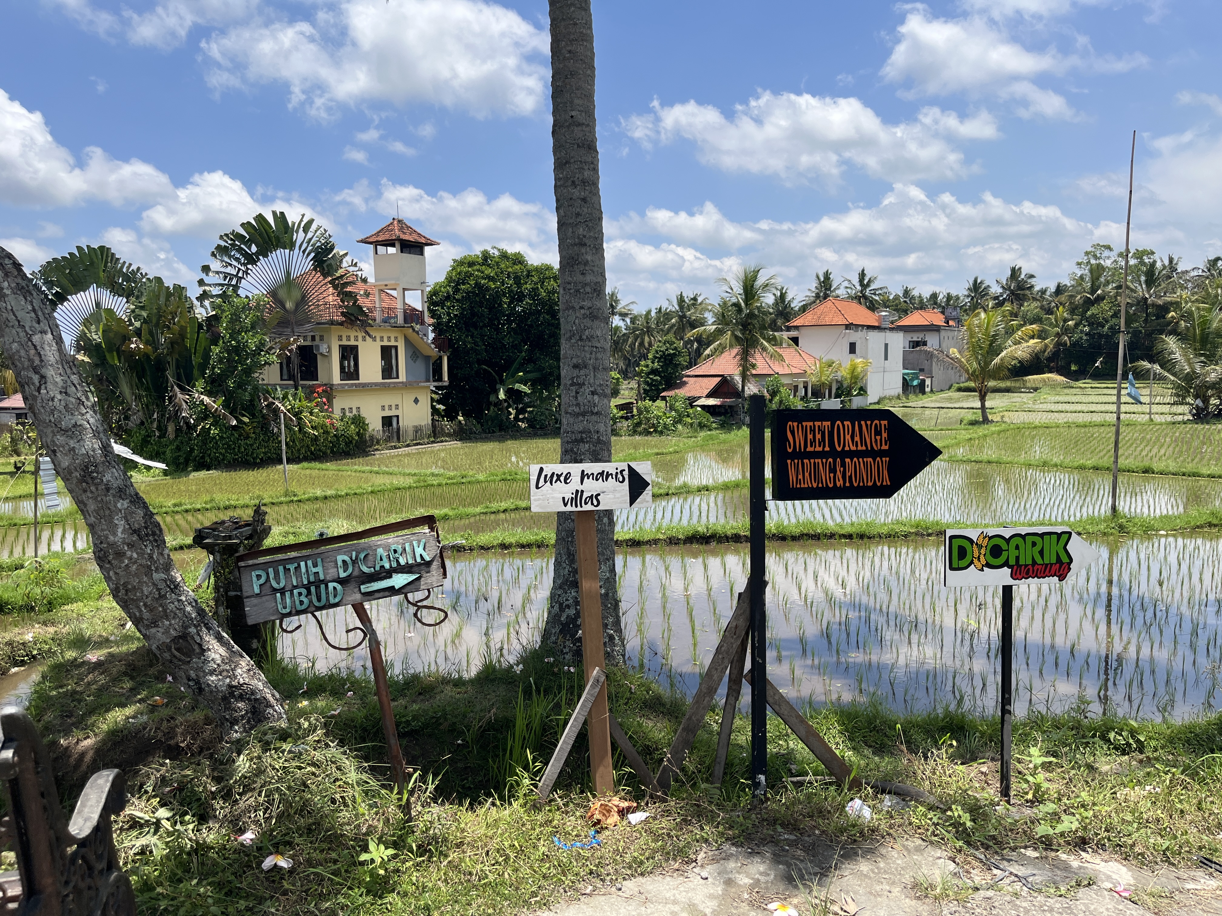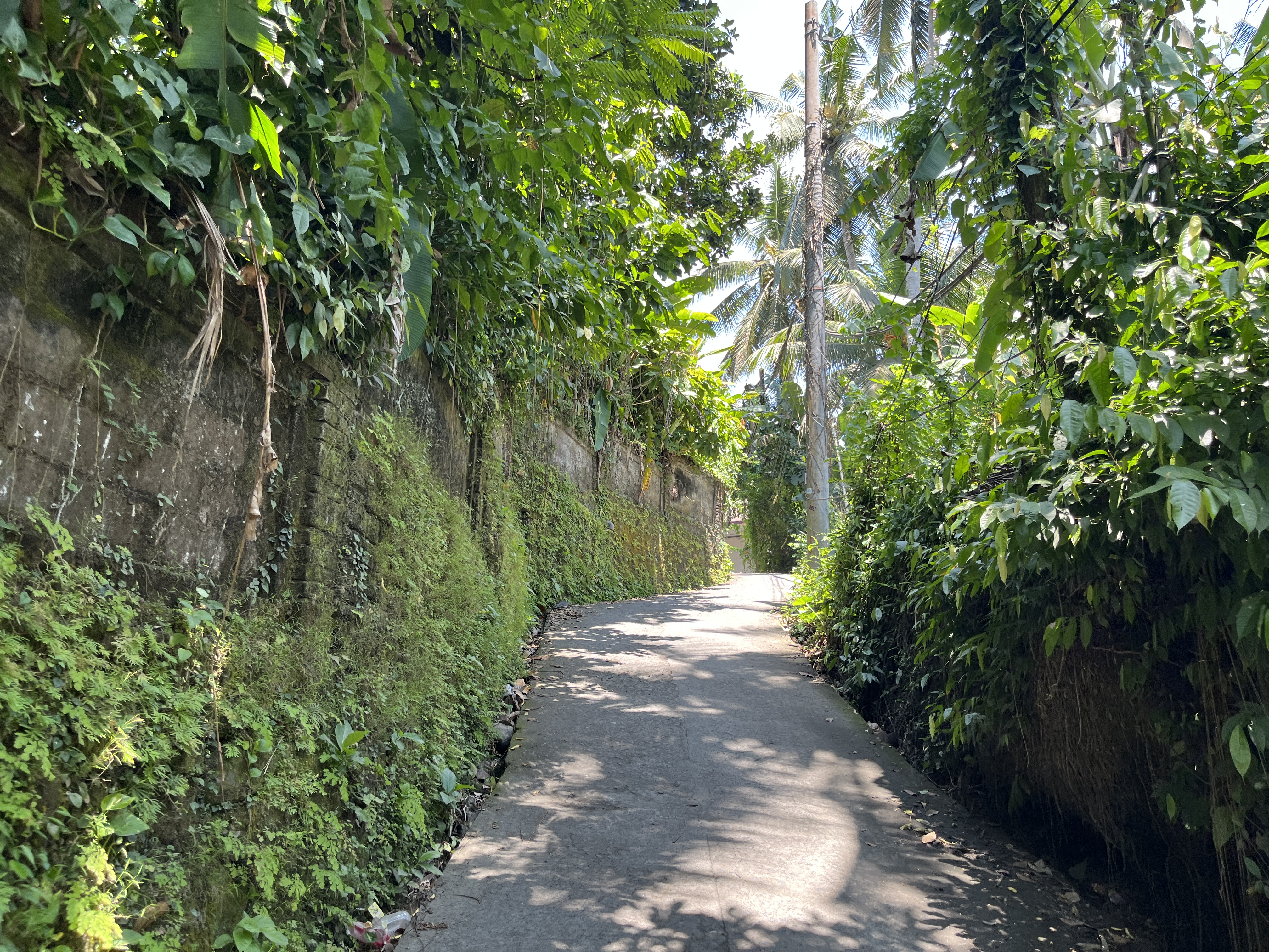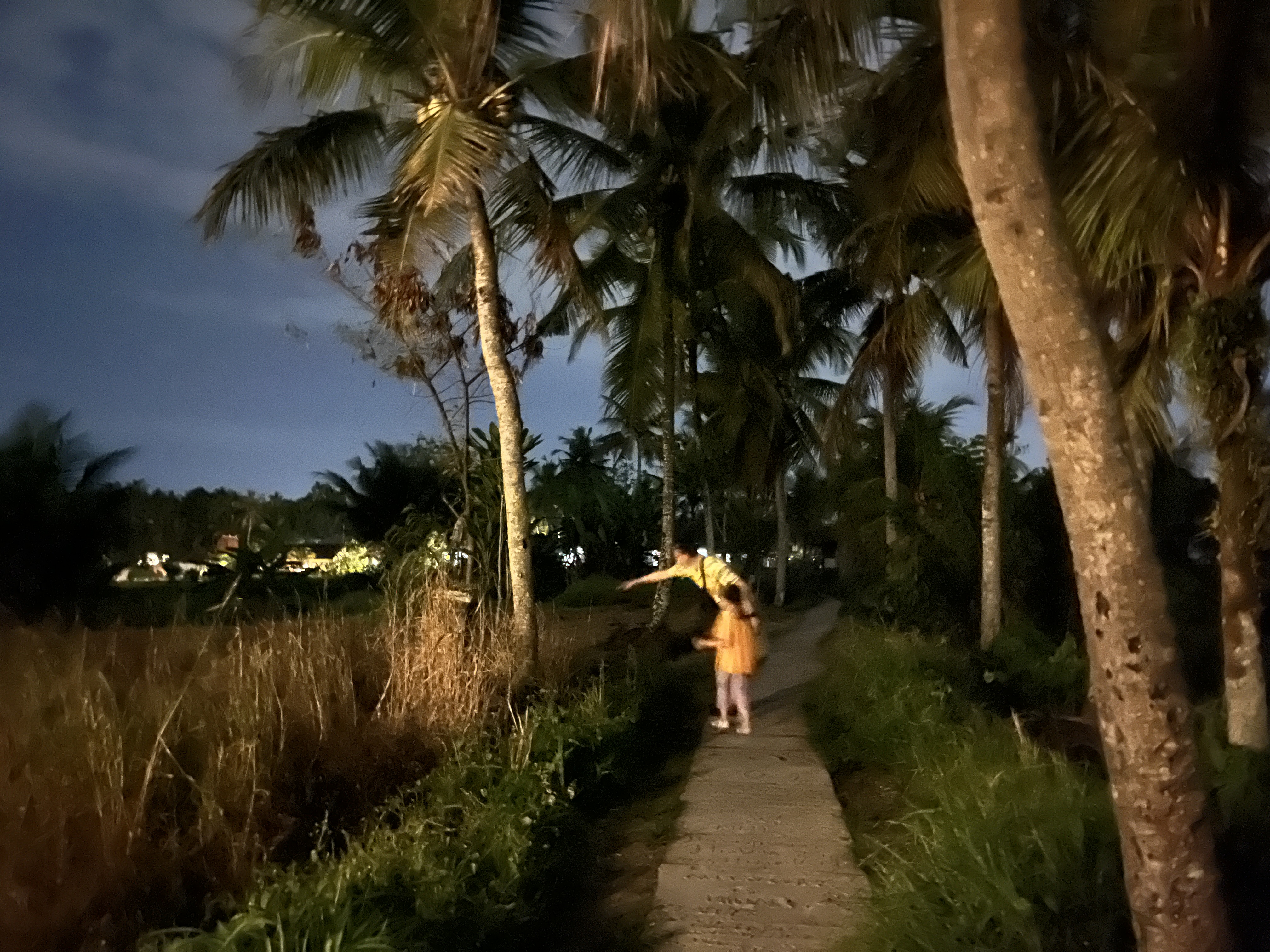 불빛이 화려한 우붓시내와는 달리 라이스필드는 농사짓는 시골이라 깜깜하고 길도 고르지 않다. 2025년부터는 관광객들로부터 기부를 받아서 판판한 돌길을 만들기 시작해서 흙길과 함께 콘크리트 돌길이 함께 공존한다. 지금도 콘크리트 돌길은 기부를 받고 있다. 그리고 관광객이 늘어나면서 중간중간 사람이 지나가면 자동으로 가로등이 켜지는 곳도 몇 개 있다. 참고로 여긴 적도라 우리나라 여름처럼 계절이 덥다고 해가 8시에 지는 게 아니라 해가 6-7시 사이에 금방 지기 때문에 밤 8시면 생각보다 아주 깜깜한 편이다.