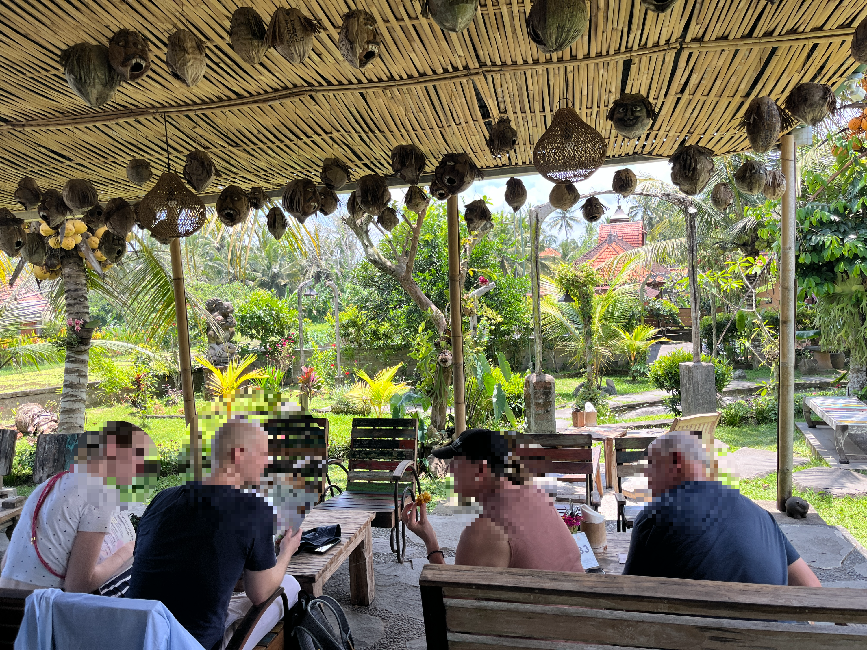 짐을 풀고 잠깐 쉰 다음 Sweet Orange Walk에 있는 식당으로 밥을 먹으로 걸어갔다. 우리 숙소에서 5분 거리에 있는 가장 가까운 식당은 식당주인이 밥을 먹어야 해서 쉬는 시간이라 못 들어가서 그 뒤에 있는 Sweet Orange Warung에 갔다. 코코넛껍질에 사람 얼굴을 그려놓아 장식해 놓은 독특한 식당이었다. 가격은 착했지만 정말 맛이 있었다.