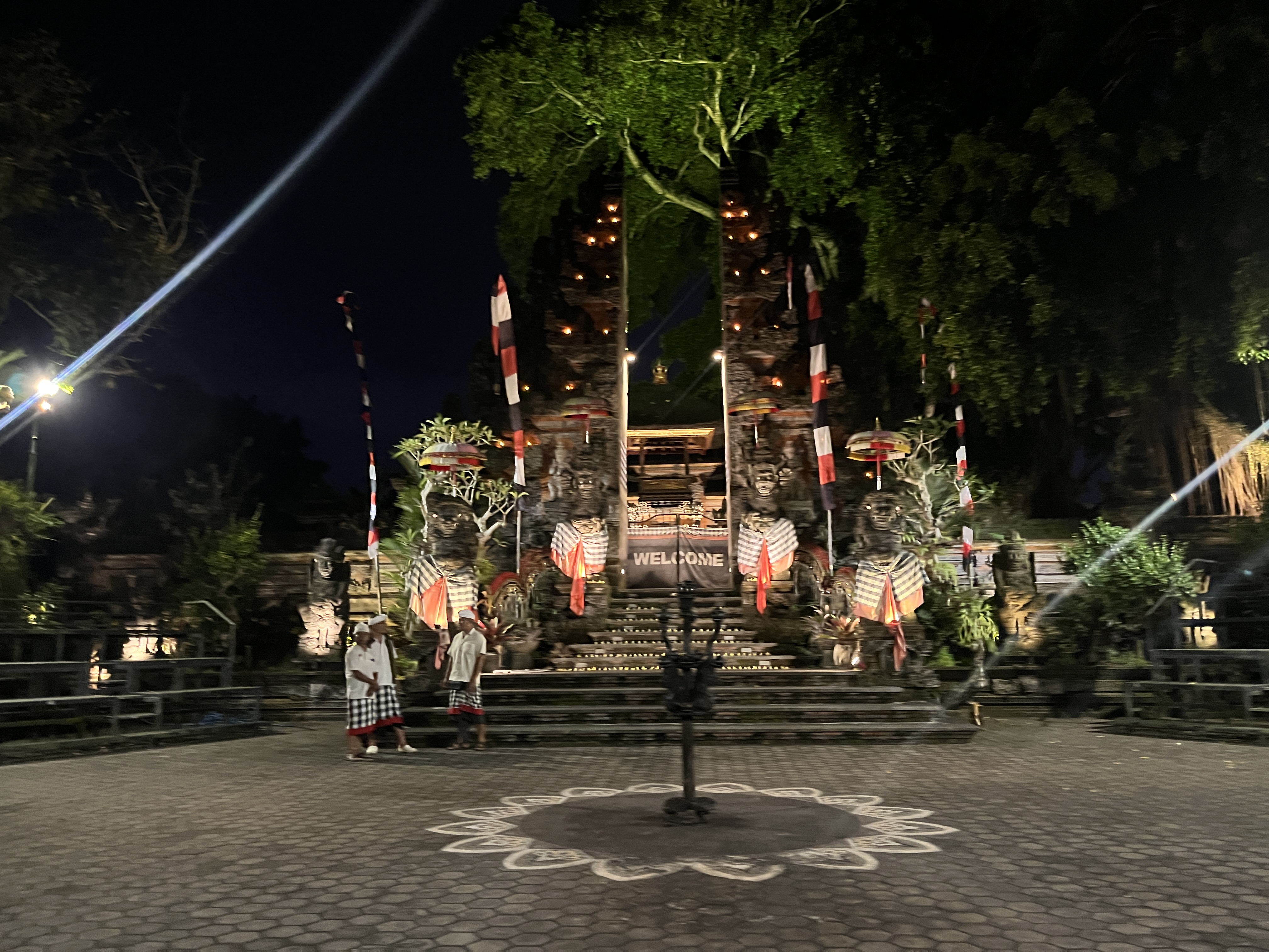 깨짝댄스 공연은 두 곳에서 진행하는데 요일별로 장소가 다르다. 목요일, 일요일에는 우붓왕궁 뒤의 Pura Puseh Ubud에서 하고 월요일, 금요일에는 연꽃사원(Ubud Water Palace) 왼쪽의 Pura Dalem Ubud에서 한다. 오늘은 금요일이므로 달렘사원으로 갔는데 후기를 들어보면 달렘사원이 더 웅장하고 멋있다고 하니 우리는 정말 여행 운이 좋다는 생각이 들었다.