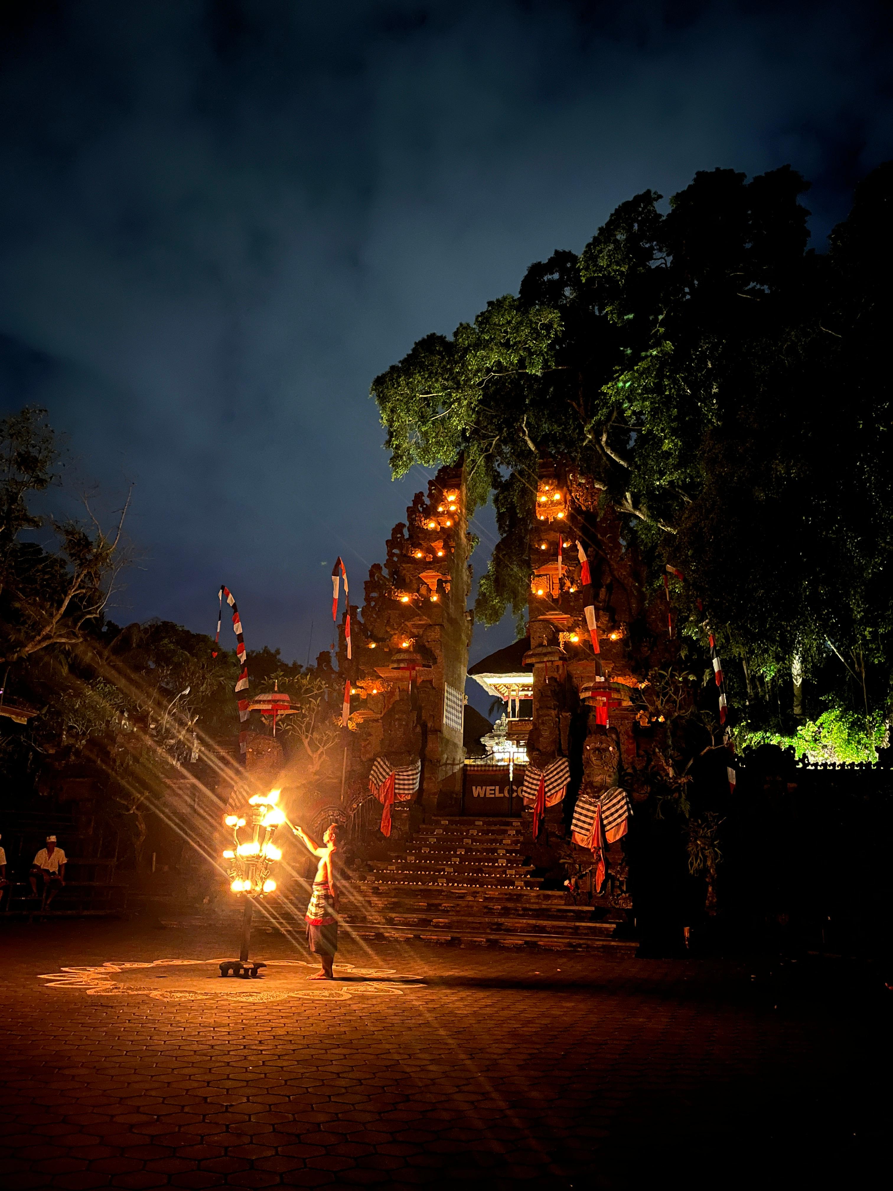 우리가 흔히 깨짝댄스로 알고 있는 이 공연의 정식 명칭은 Kecak Ramayana and Fire Dance다. 원숭이 춤 공연이 끝난 뒤에는 파이어 댄스가 이어지는데, 대부분은 불을 뿜거나 저글링을 하는 화려한 불쇼를 떠올릴 것이다. 하지만 우리의 예상과 달리, 파이어 댄스는 숙련된 공연자가 뜨겁게 달궈진 숯불 위를 맨발로 걷고, 불을 발로 차 올리는 매우 위험한 퍼포먼스였다. 숯불이 관객석 쪽으로 날아와 자칫 데이지 않을까 싶을 정도로 아찔했다. 여러 돌발 상황을 고려해 준비된 공연이겠지만, 갑자기 바람이라도 불면 불똥이 튀어 화상을 입을 것 같다는 걱정이 들었다.