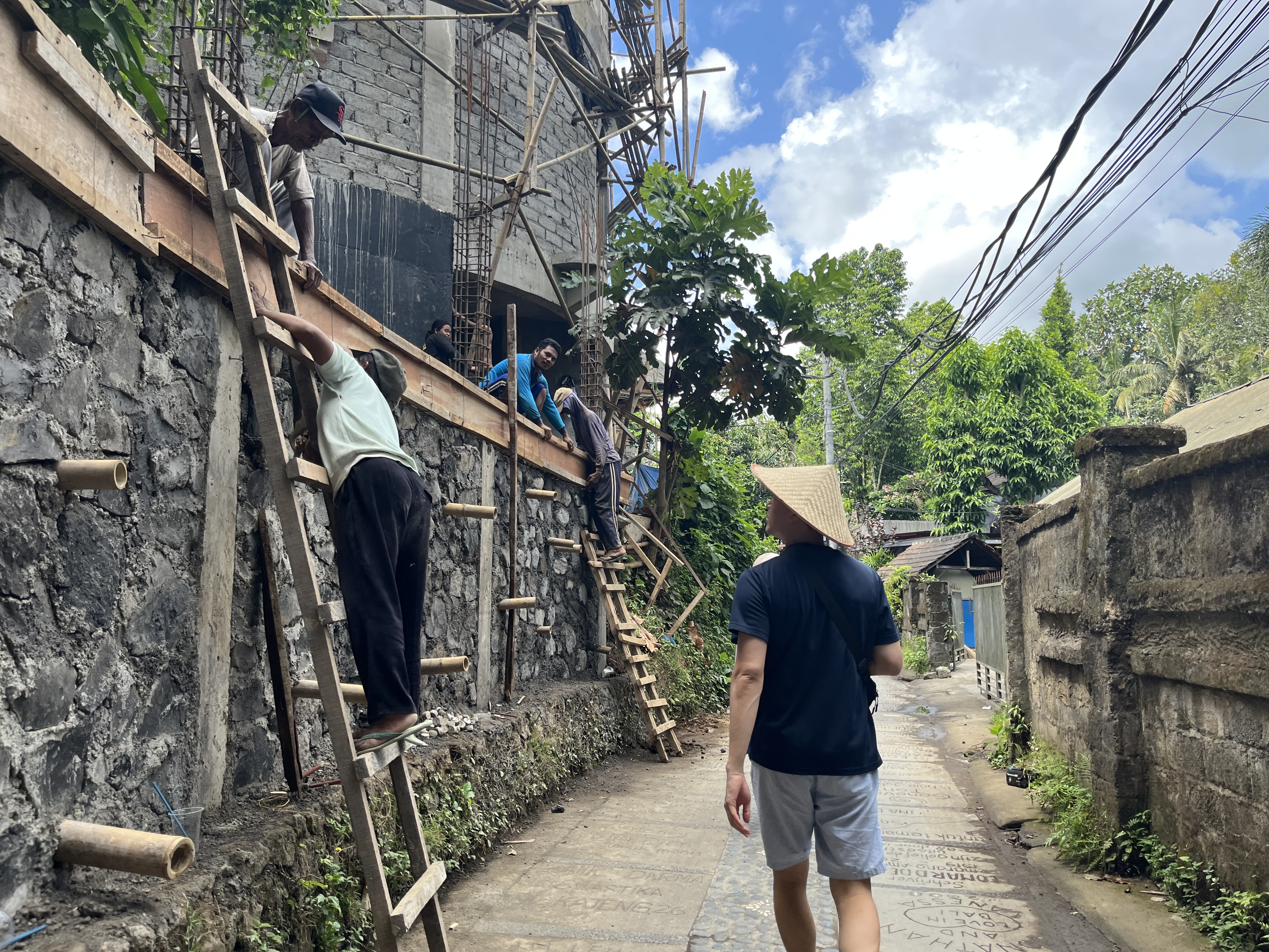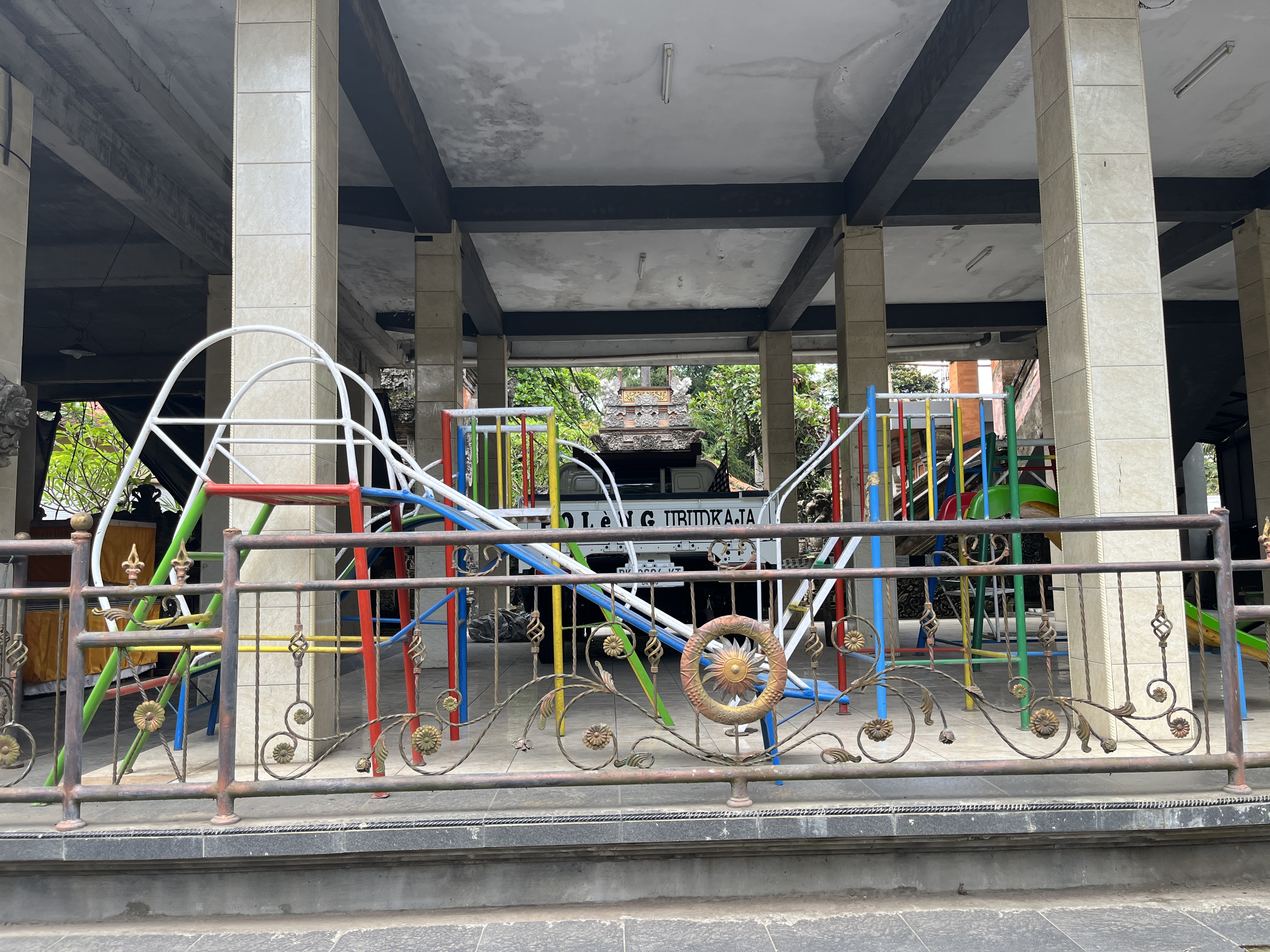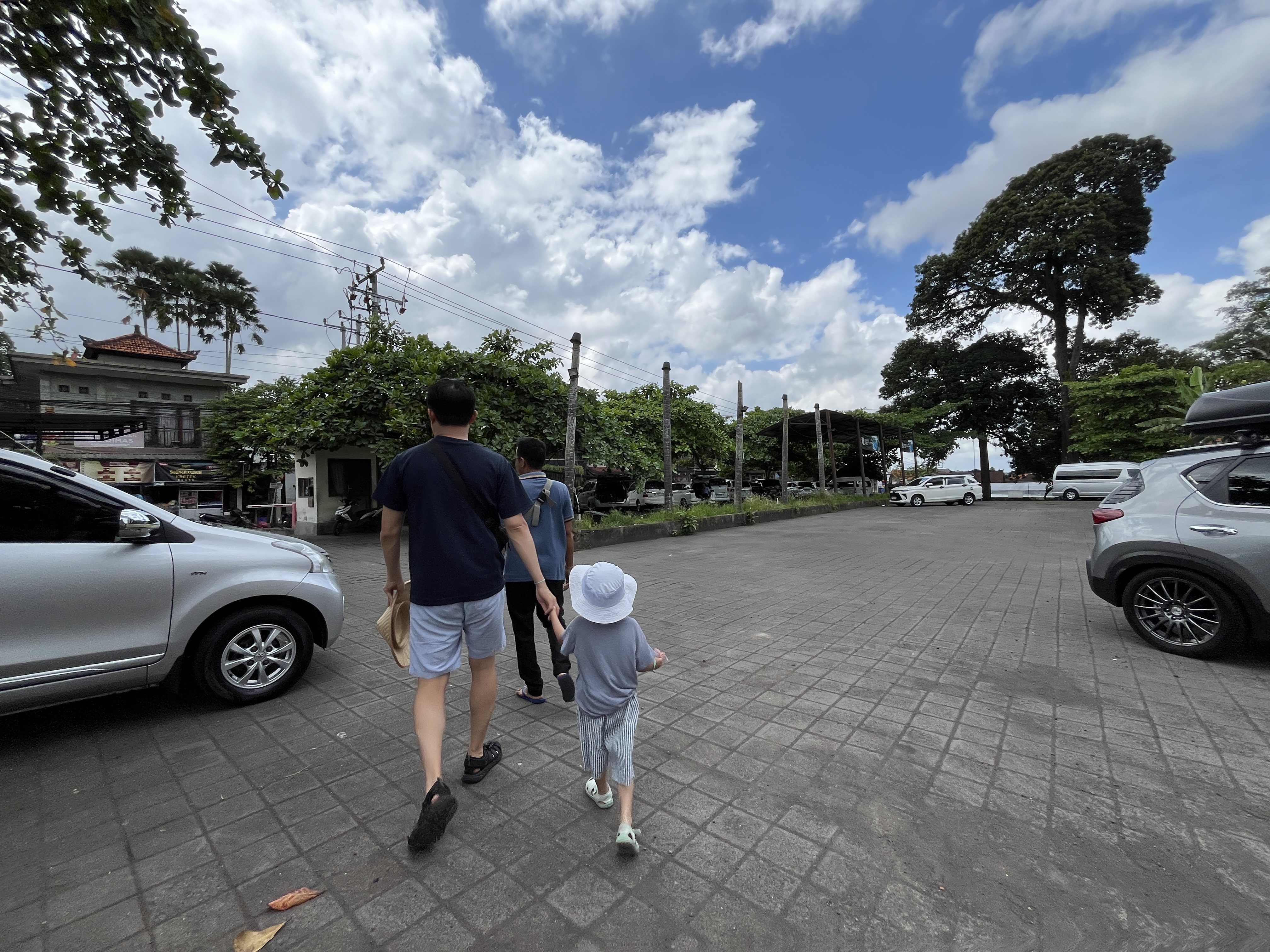 우린 8시간 택시 서비스를 이용했고 우붓 라이스필드 아래에 Sweta oke 주차장 (시내와 Kajeng Rice Field Walk을 연결하는 좁은 통로 앞 주차장. 구글에는 Ubud Central Parking라고 나옴)에서 기사 아저씨를 만나기로 했다. 오랜만에 우리가 맨 처음 숙소에 들어왔던 길로 마을을 걸어 내려왔다. 우붓에 관광객들이 많아서인지 여기저기서 건물을 짓고 있었고, 또 마을의 아이들이 이용하는 유치원 놀이터? 도 보였다.