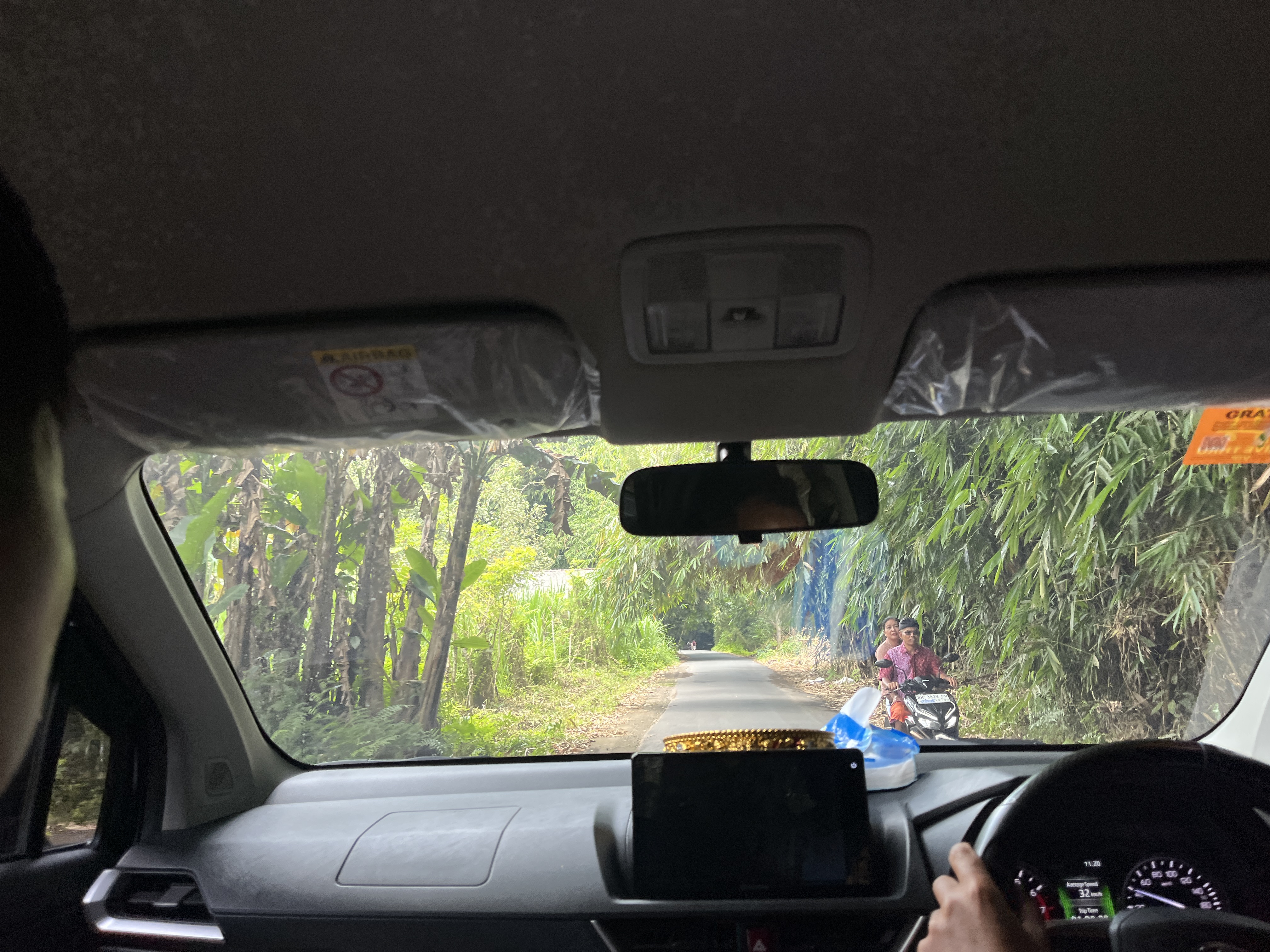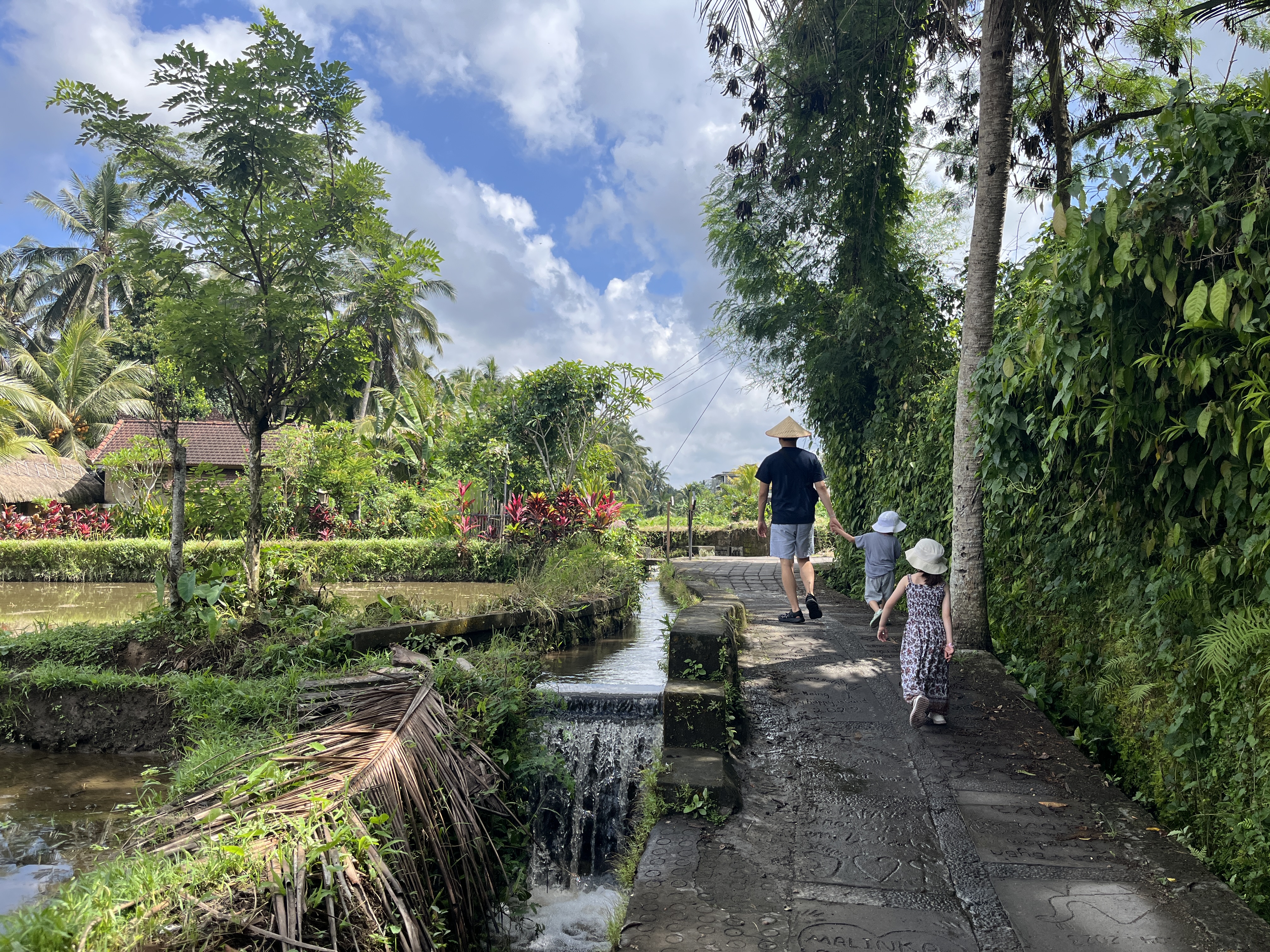 발리에서 택시를 장거리로 탄다면 목베개와 멀미약은 필수다. 발리는 중간중간 폭포와 정글이 있어서 직선거리라도 빙 돌아가야 한다. 길이 구불구불하여 아이들이 택시에서 정말 힘들어했다. 둘째는 잠들고 첫째는 내리고 싶다고 찡찡대서 달래느라 택시 안이 소란스러웠다. 쁭리뿌란마을은 대나무가 많이 나는 곳이라는데 거의 도착할 때쯤 주변을 살펴보니 정말로 대나무가 가득했다.