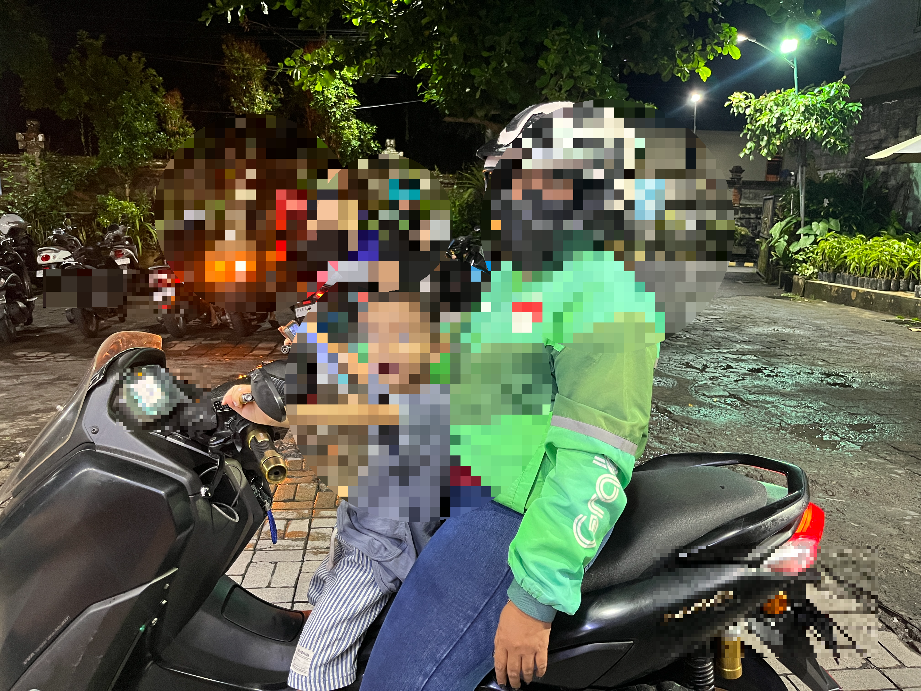 마트에서 장 보는 데 1시간이 더 걸렸다. 해가져서 어둑어둑 해 질 무렵 마트 주차장에서 그랩택시를 타고 신나게 숙소로 돌아왔다. 현지인들처럼 앞에 아이들을 각각 태우고 씽씽 달렸는데 애들은 재미있었을지 몰라도 나는 정말 무서웠다.